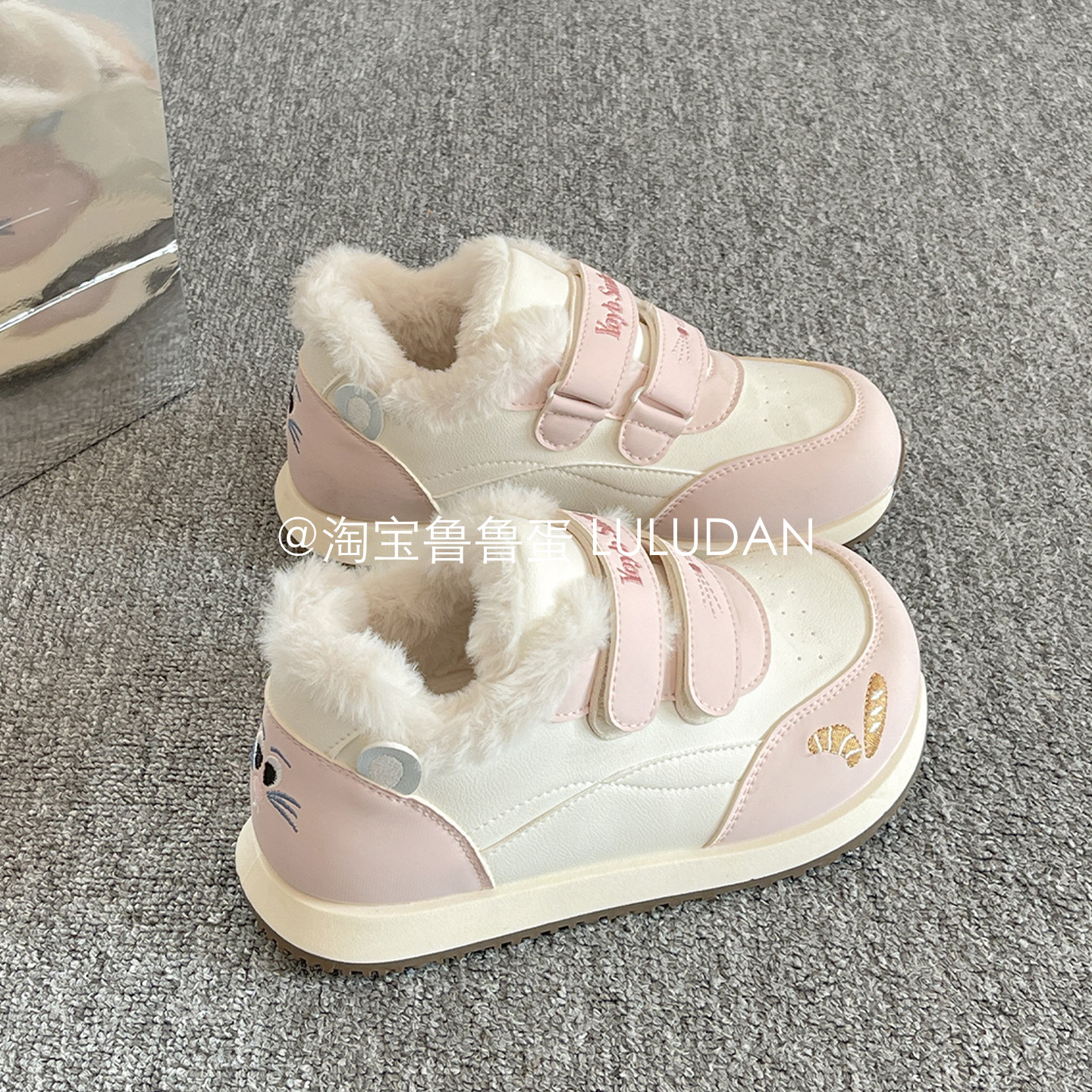 鲁鲁蛋 冬季加绒板鞋女款2025新款厚底小白鞋休闲二棉鞋阿甘鞋子