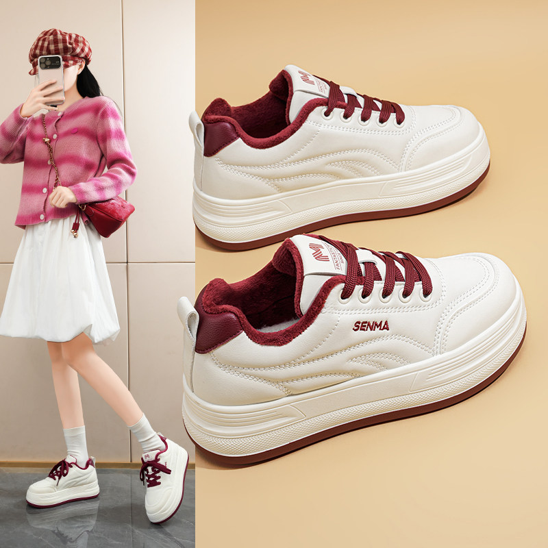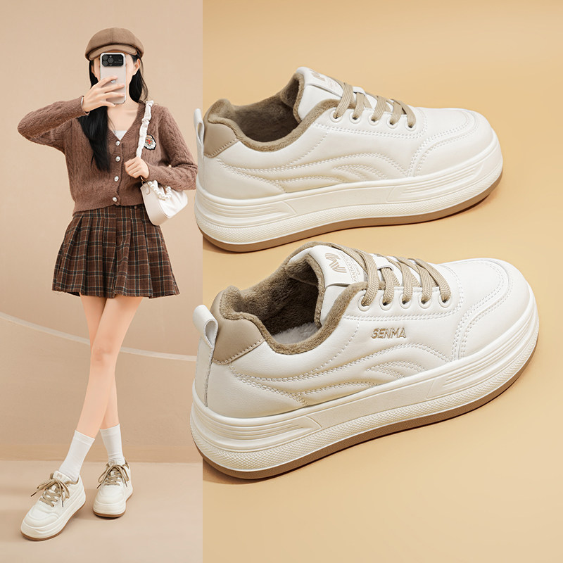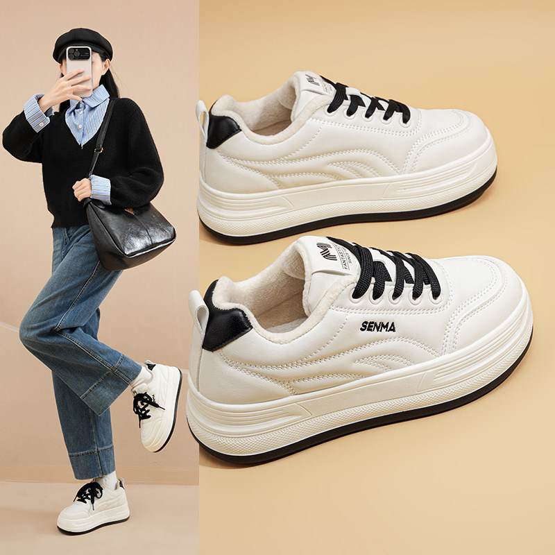 森马加绒小白鞋女款2025冬季新款百搭休闲板鞋爆款厚底二棉鞋子女