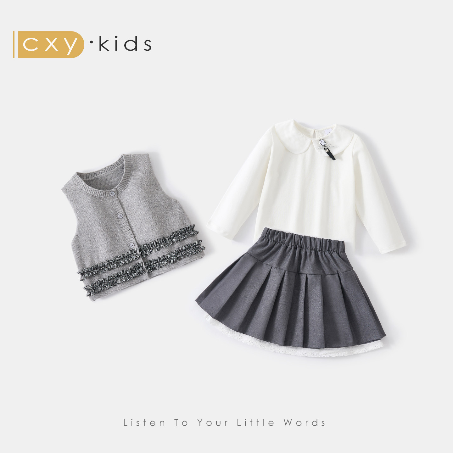 女童春装套装2026新款长袖t恤马甲女宝公主风短裙韩系高级感穿搭