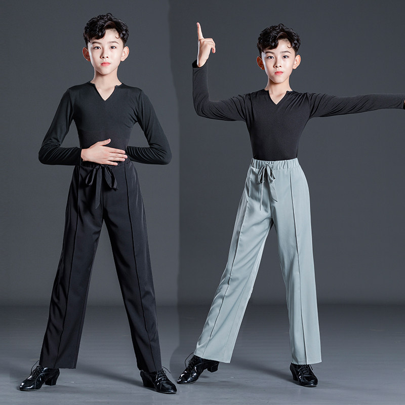 拉丁舞服男少儿童交际国标舞裤拉丁练功服专业比赛考级装秋冬长袖