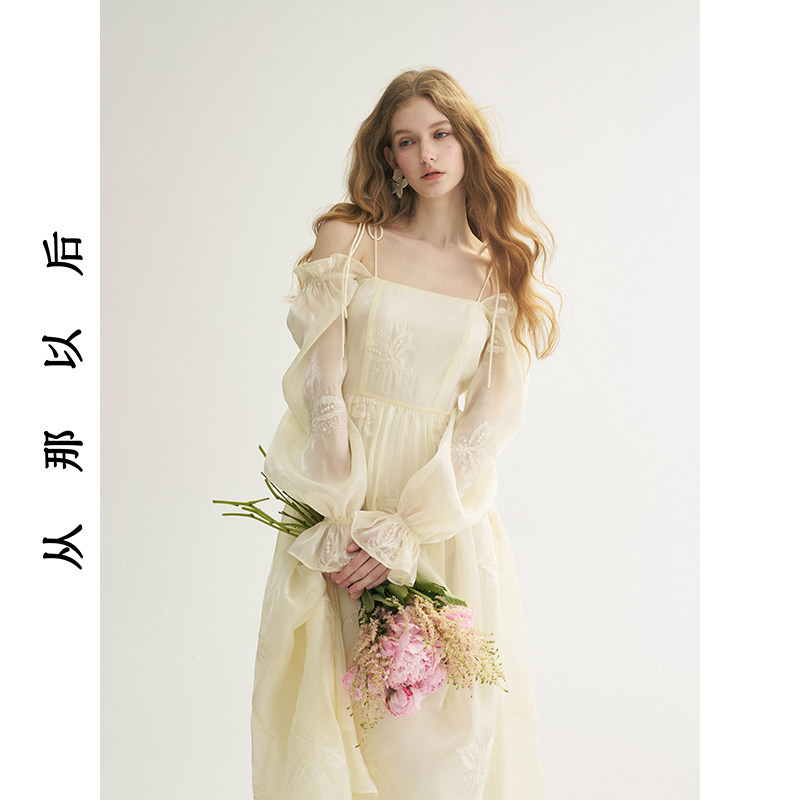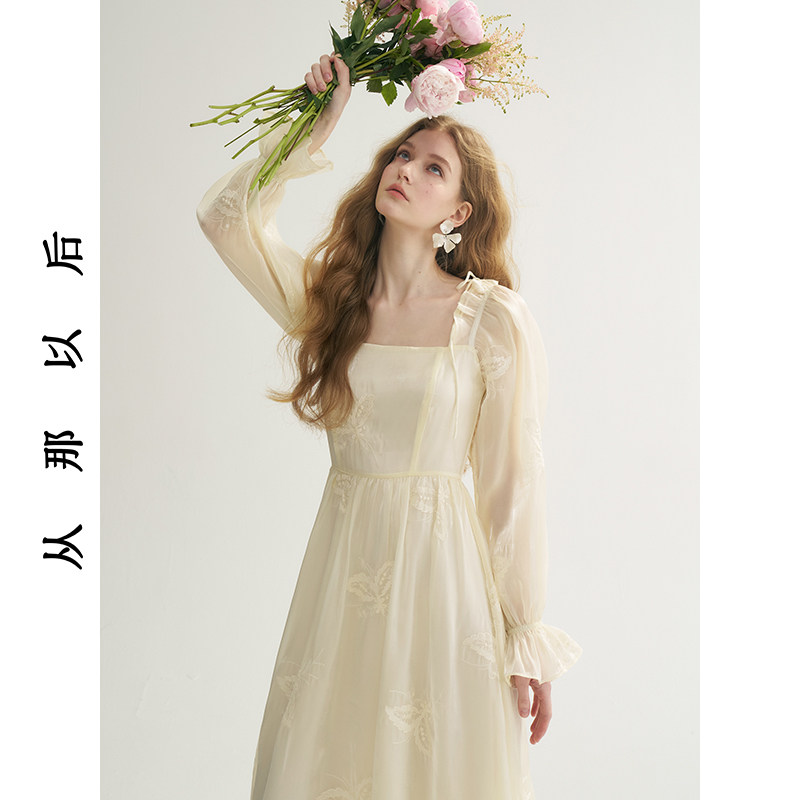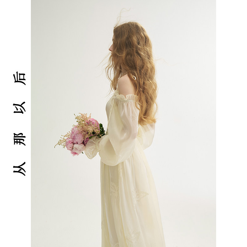 从那以后白色长款连衣裙法式穿搭小礼服裙泡泡袖长袖裙子女春新款