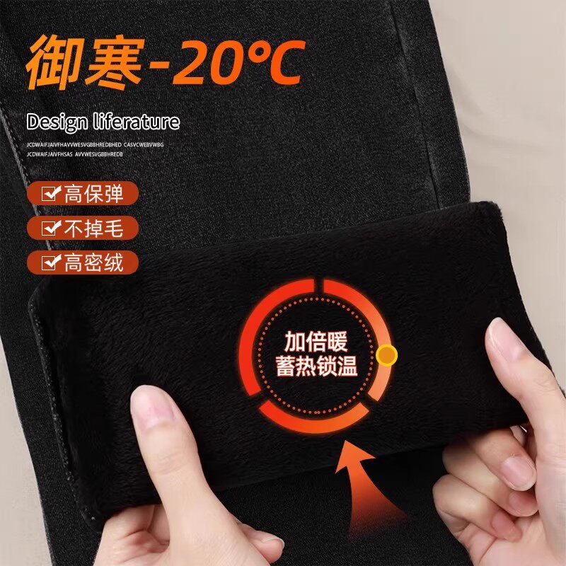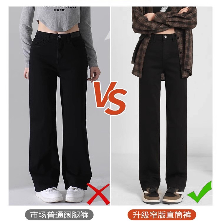 加绒窄版直筒裤女2026年新款爆款冬季裤子小个子阔腿黑色牛仔裤子