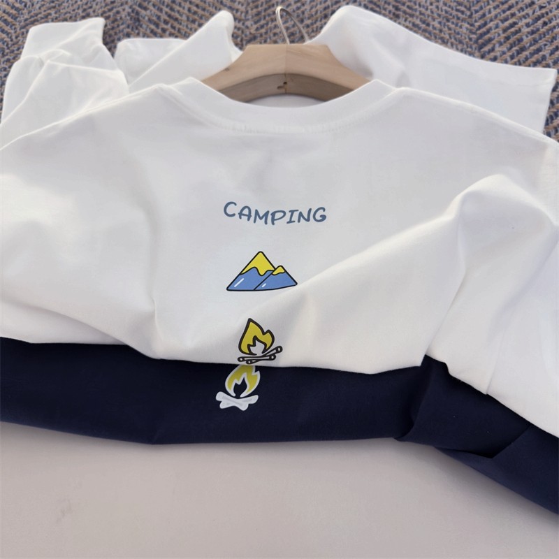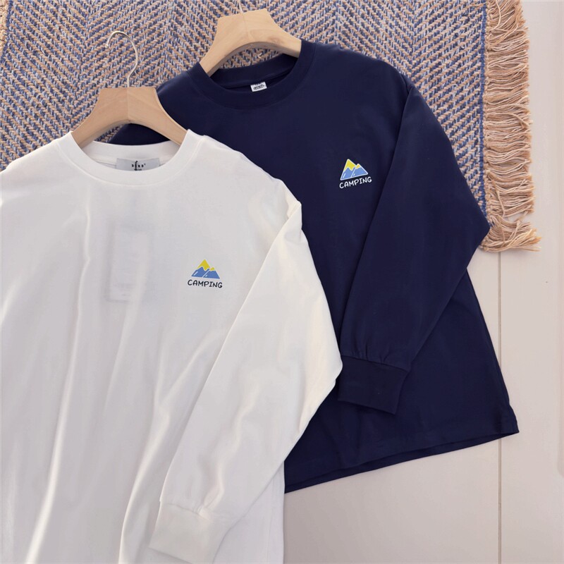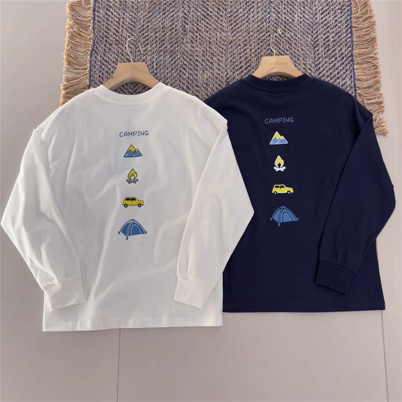 露营松弛感~150-180新款中大童长袖T恤春秋青少年休闲纯棉打底衫