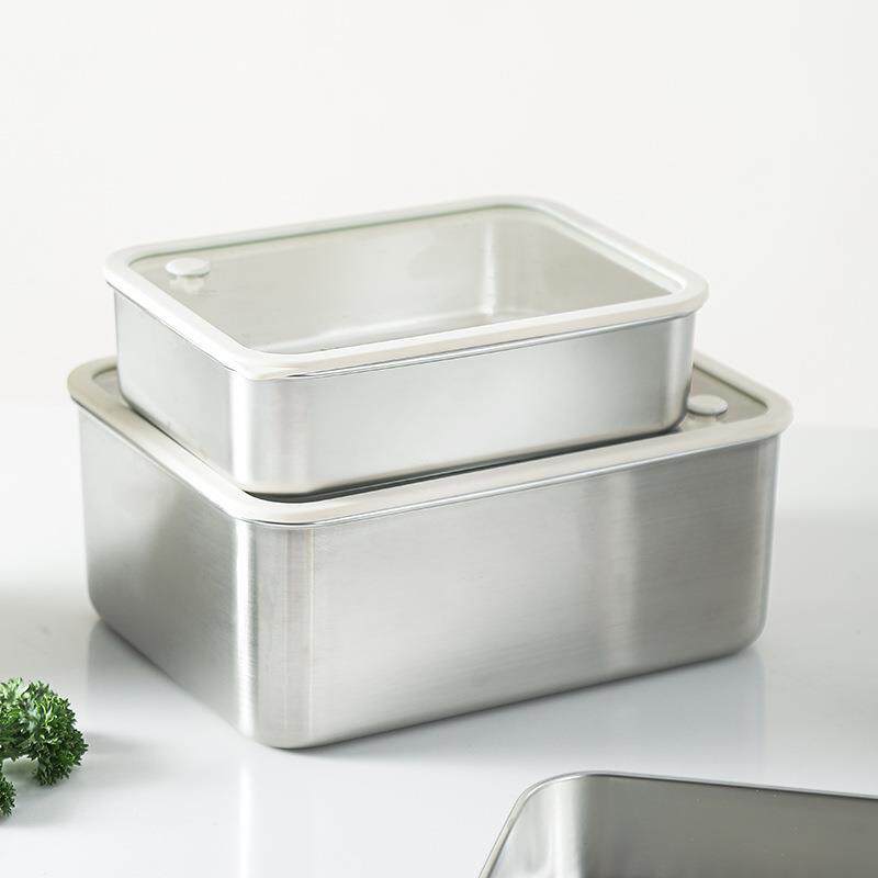 304不锈钢大号带盖透明长方形食品保鲜盒冰箱收纳冷冻储物盒