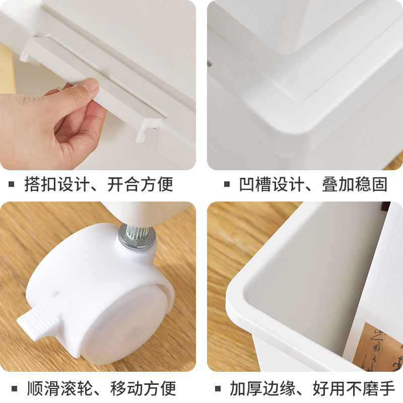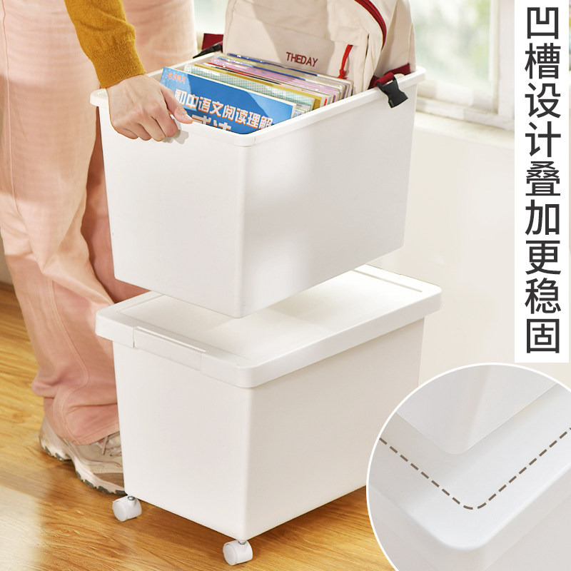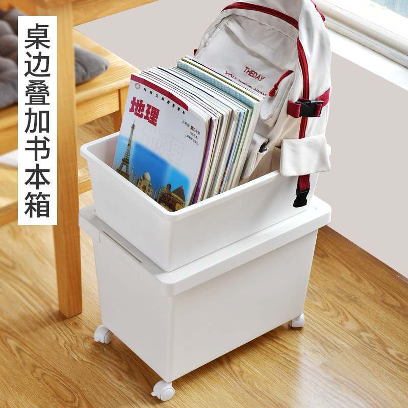 书本收纳箱学生教室用带轮箱子收纳筐装书书箱书包带滑轮带盖加厚