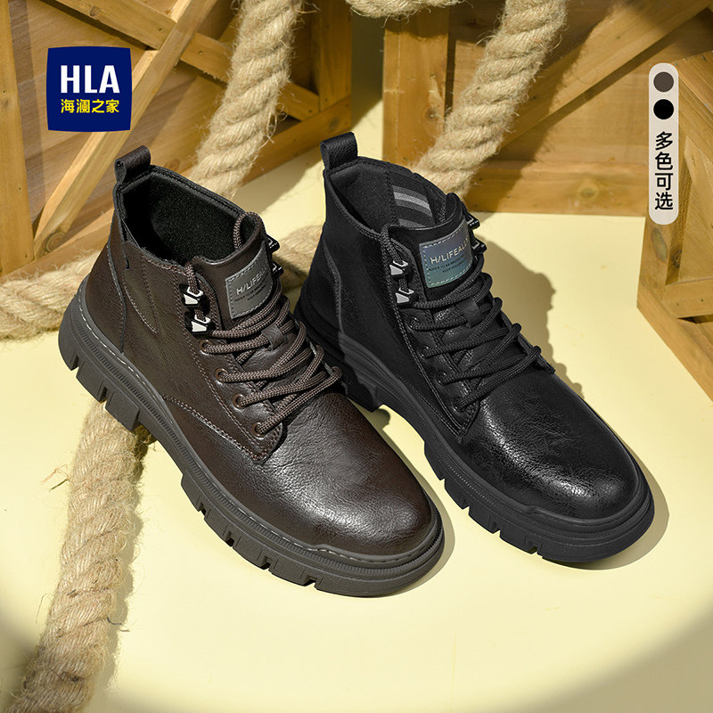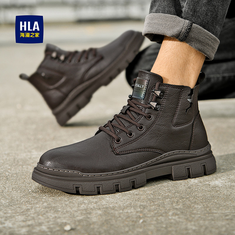海澜之家2026新款马丁靴男款厚底增高低帮工装鞋黑色男鞋秋冬加绒
