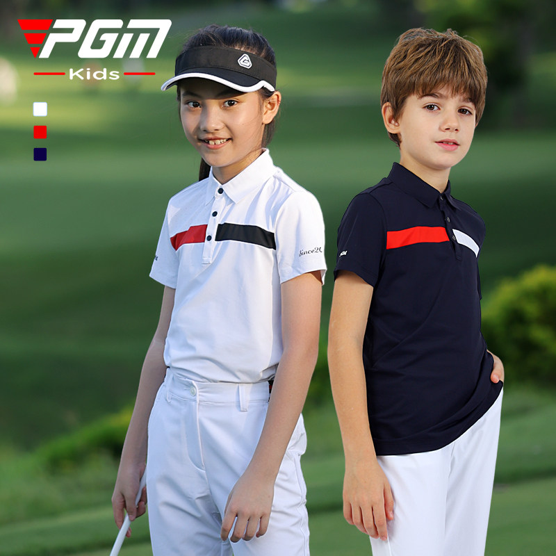 PGM儿童高尔夫服装男女童短袖T恤夏季速干polo衫青少年上衣亲子装
