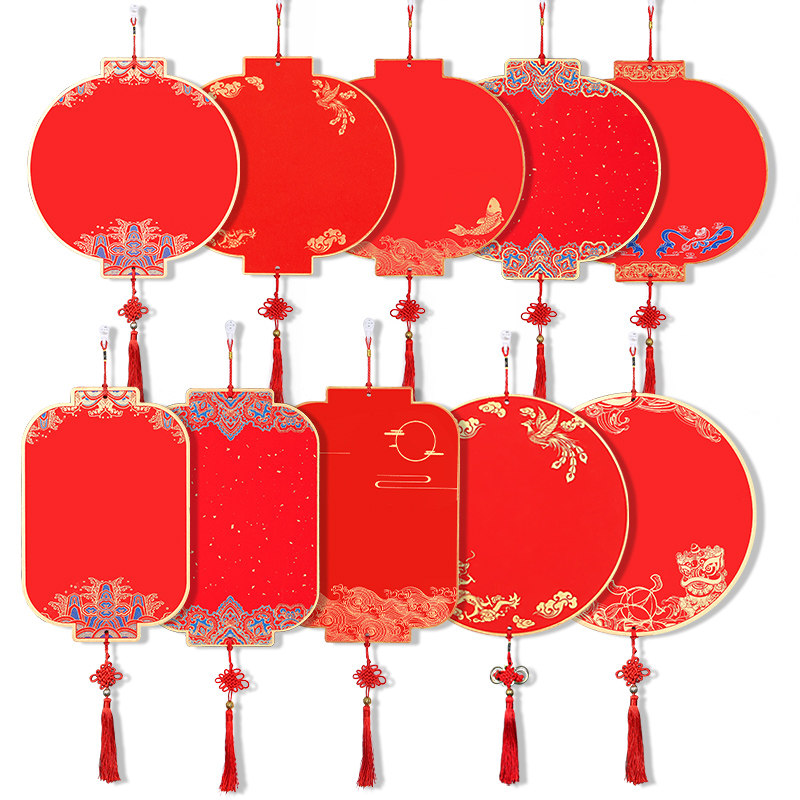 燃灯批发10个装福字硬卡纸万年红宣纸福卡挂件新春空白手写斗方福字红纸挂饰毛笔字书法双面灯笼卡纸中国结