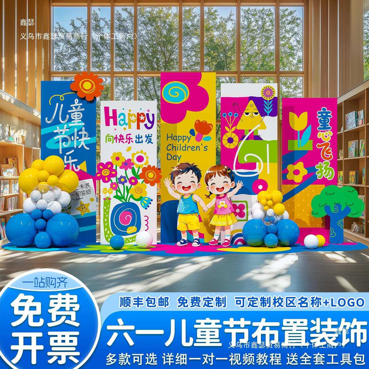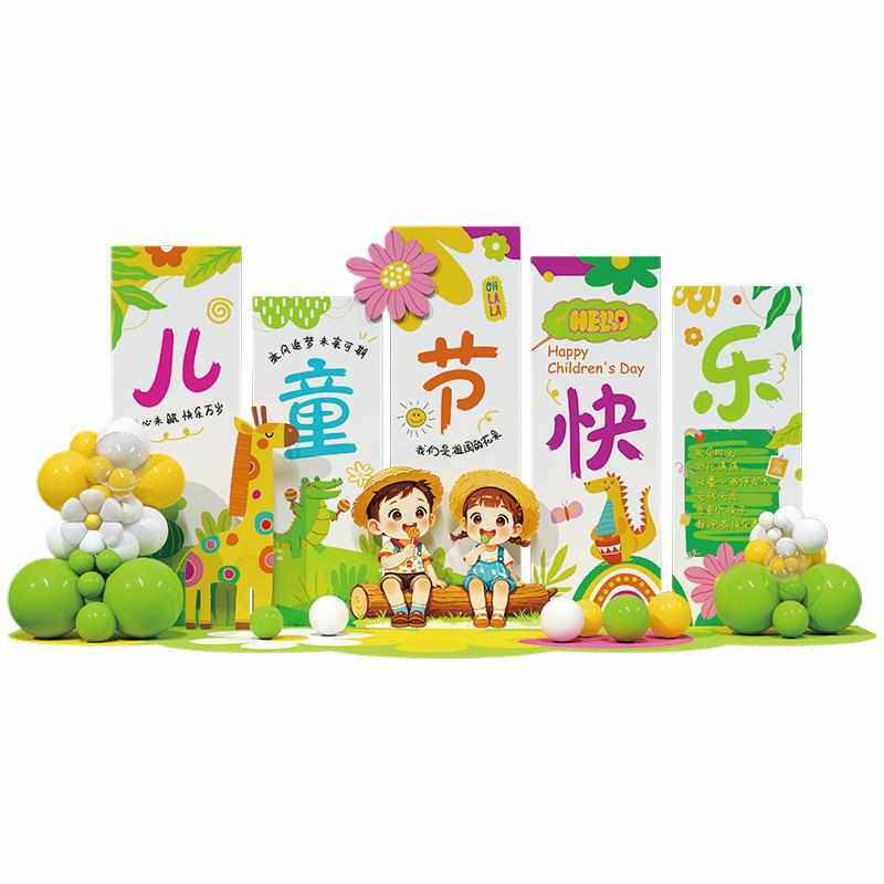 61六一儿童节装饰幼儿园场景布置氛围板班级教室活动气球背景墙猫