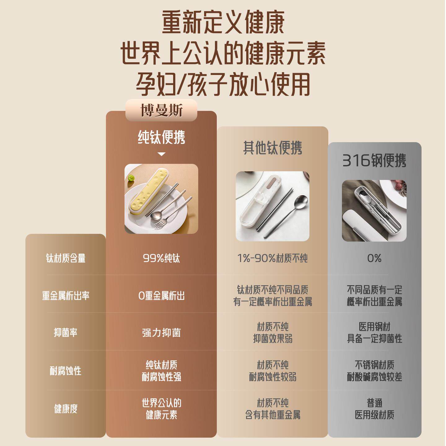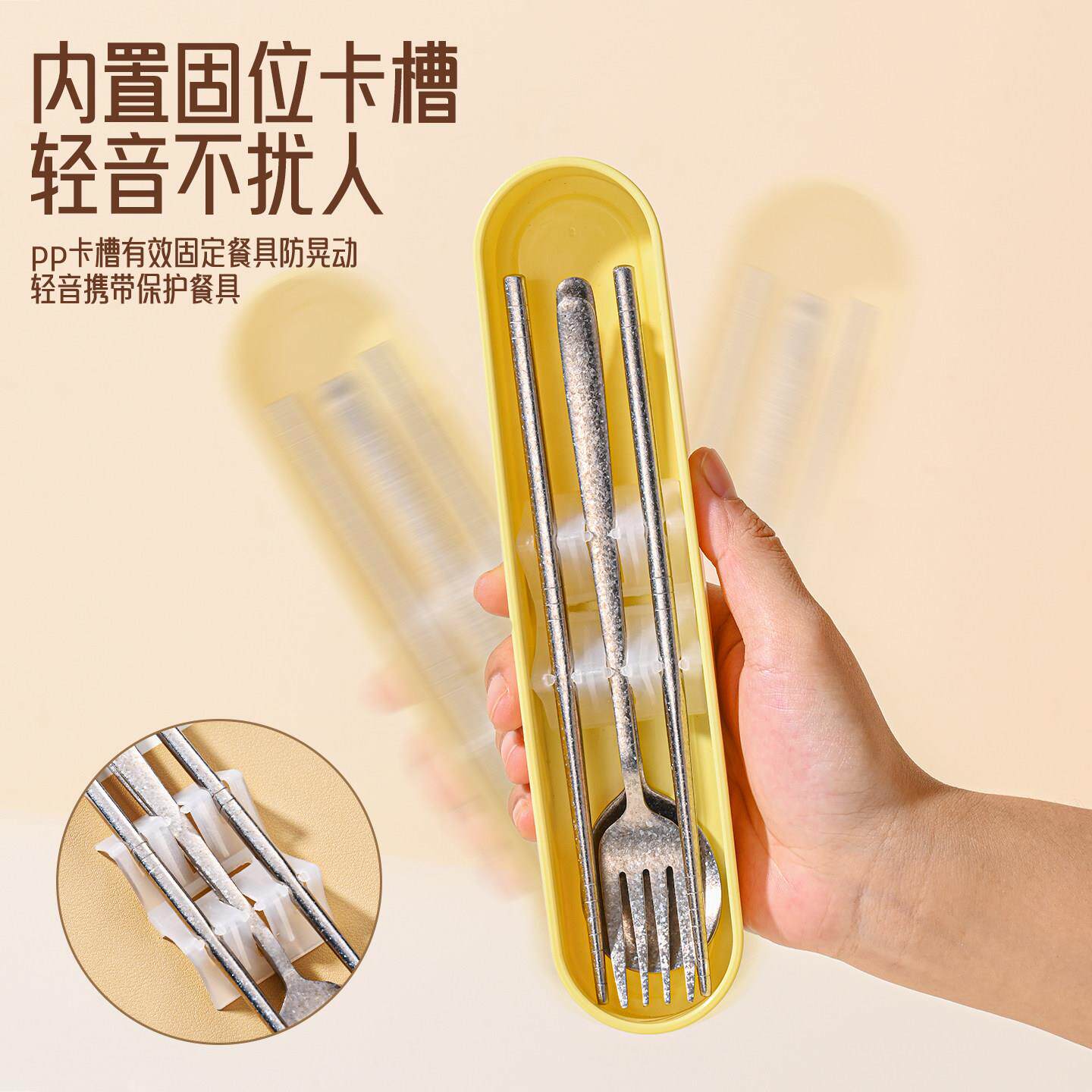 纯钛筷子勺子套装小学生便携餐具收纳盒外带一人专用上班族三件套