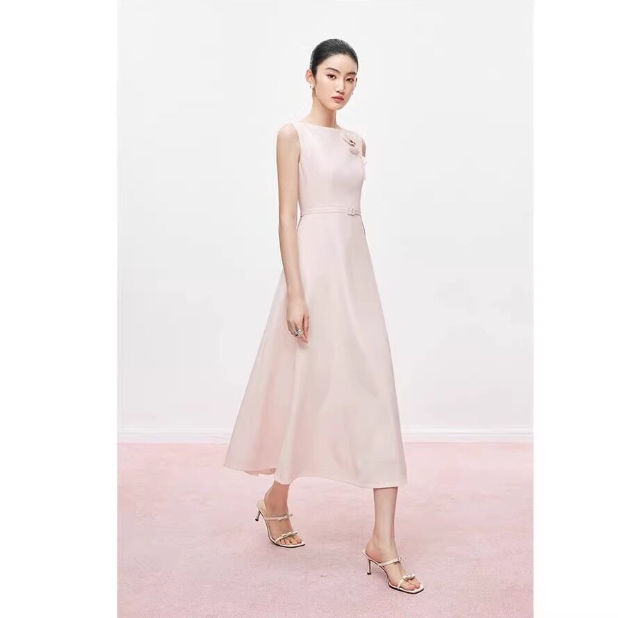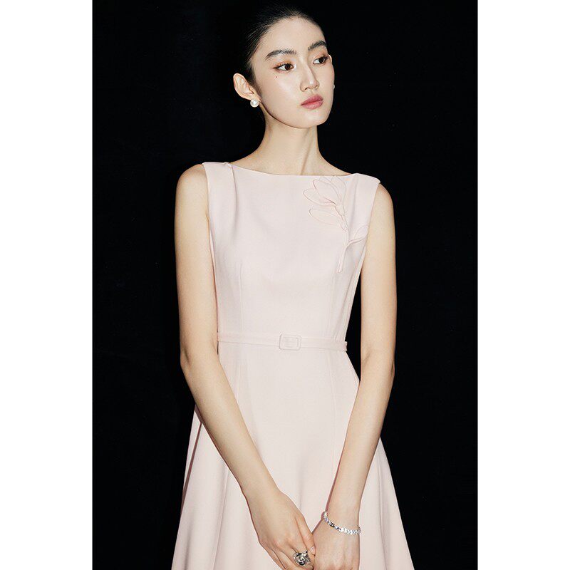 无袖连衣裙女粉色2026夏新款显瘦轻奢收腰高级感气质订婚礼服裙子