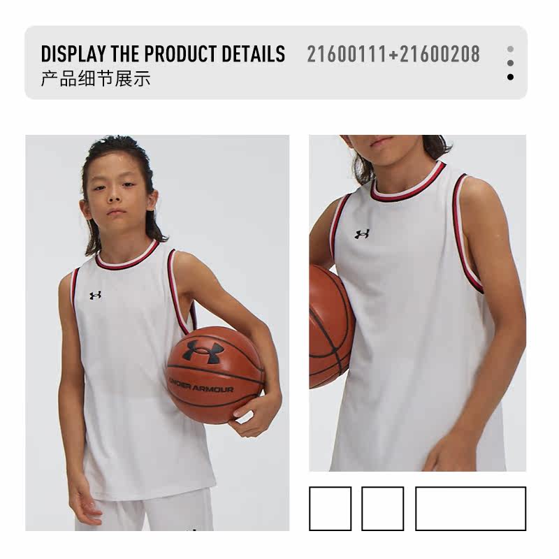 安德玛儿童篮球服套装男童速干运动短裤背心女童中大童短袖两件套
