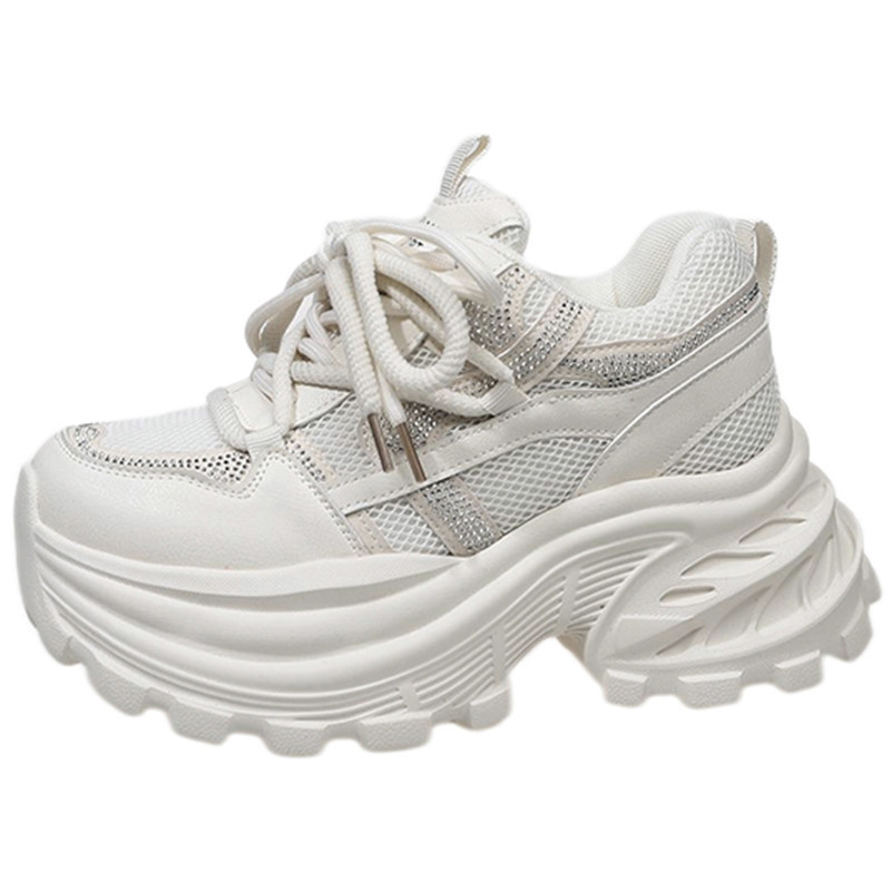 内增高老爹鞋女款2026新款网面透气小白鞋百搭厚底休闲松糕运动鞋