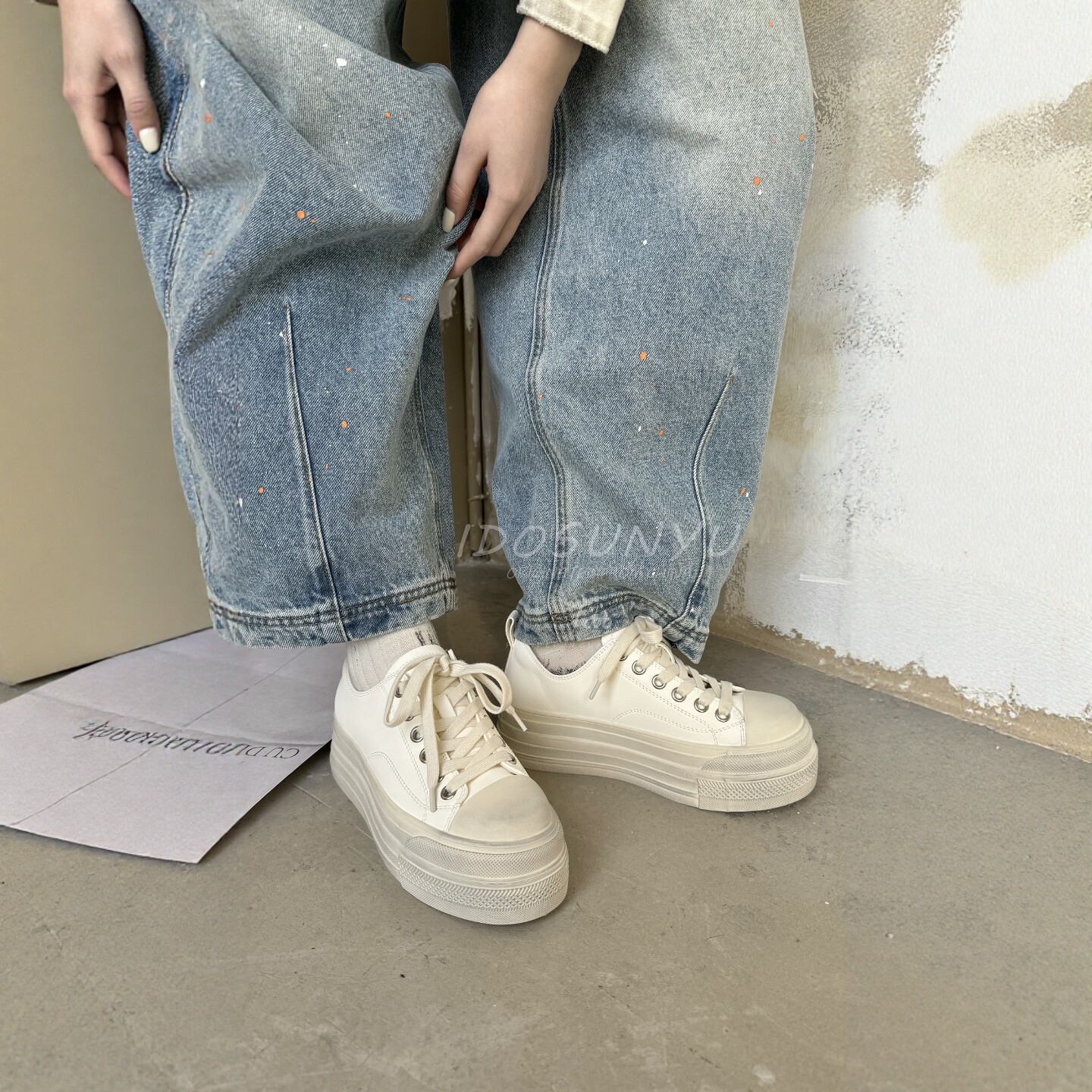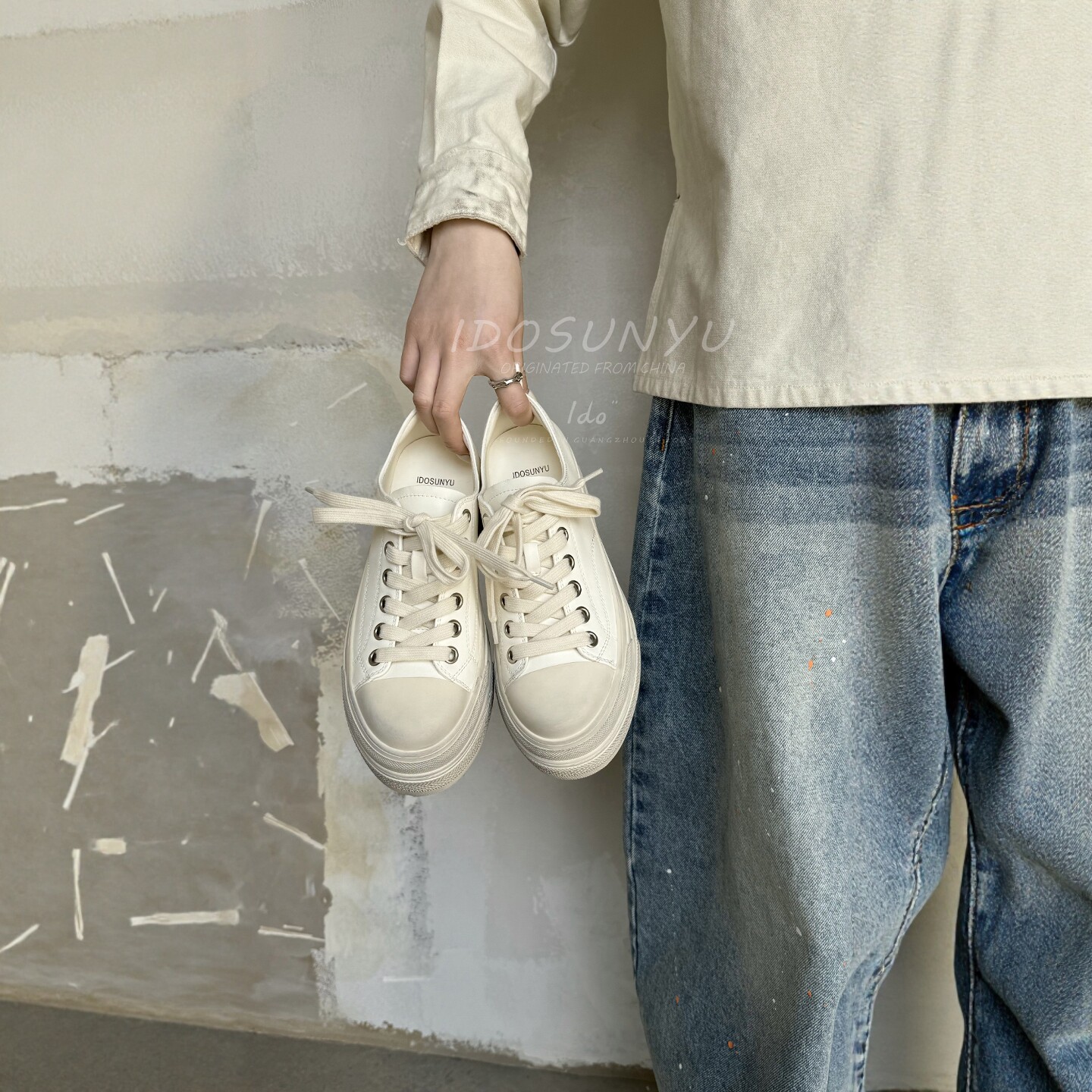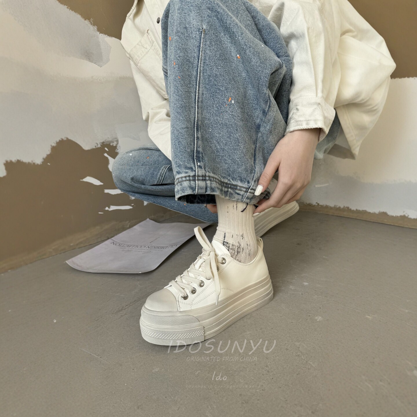 IDO2026新款今年流行爆款女鞋春款擦色做旧白色板鞋女厚底休闲鞋