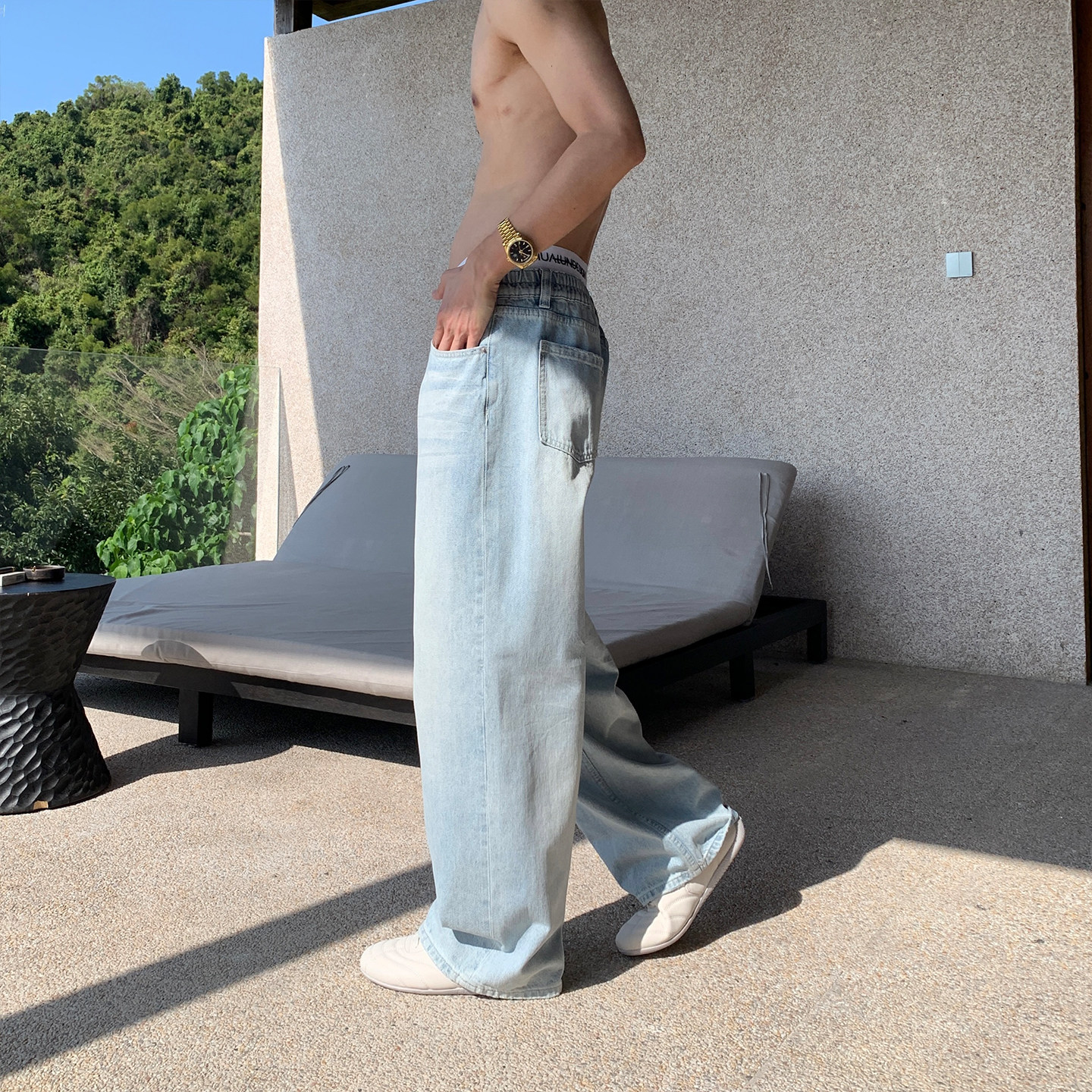 Hualun超火蓝色牛仔裤男款2026新款男士高级感的裤子薄款微喇长裤