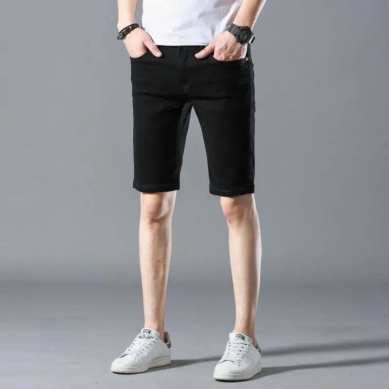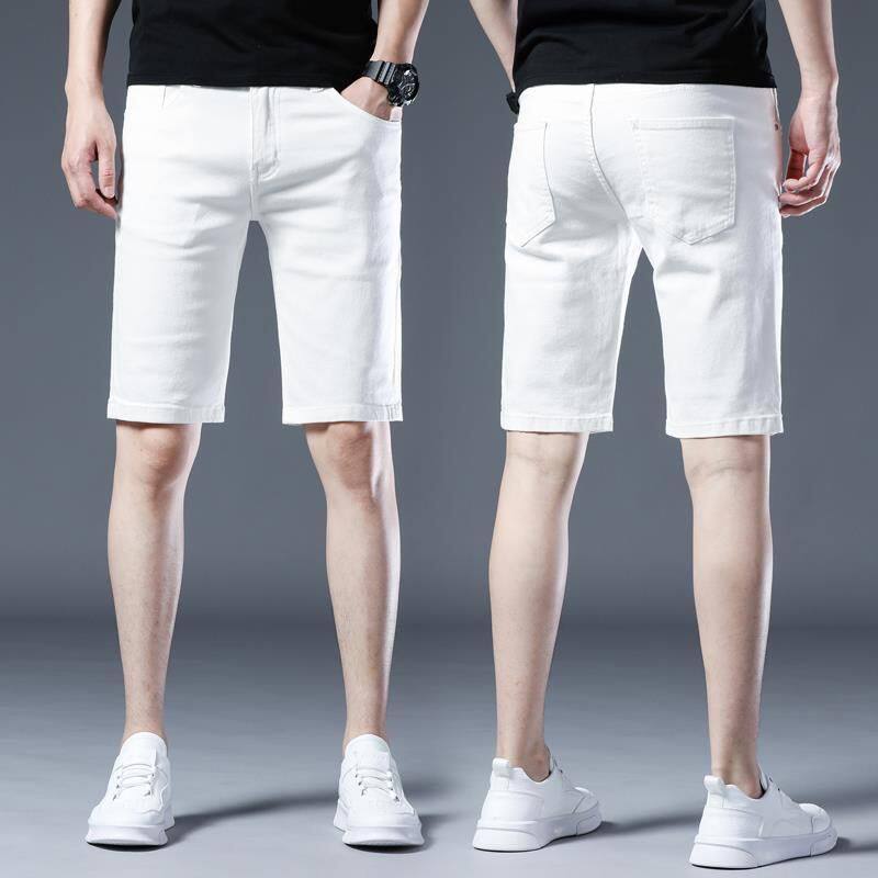 2025夏季薄款修身中裤男款休闲白色牛仔短裤弹力男士显瘦五分裤子