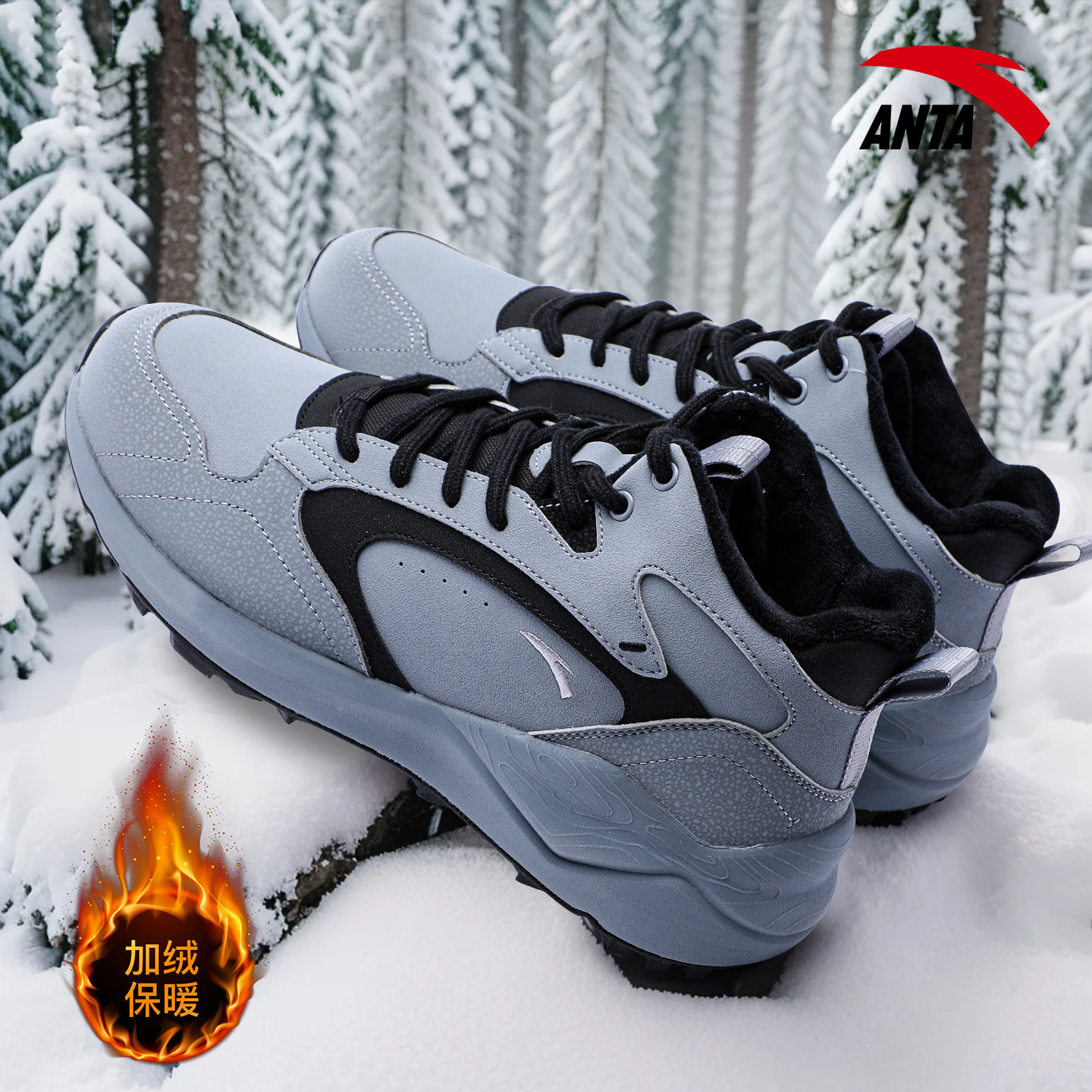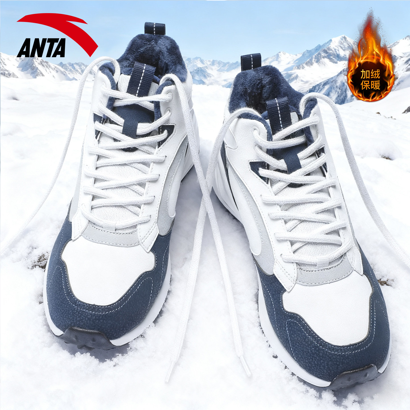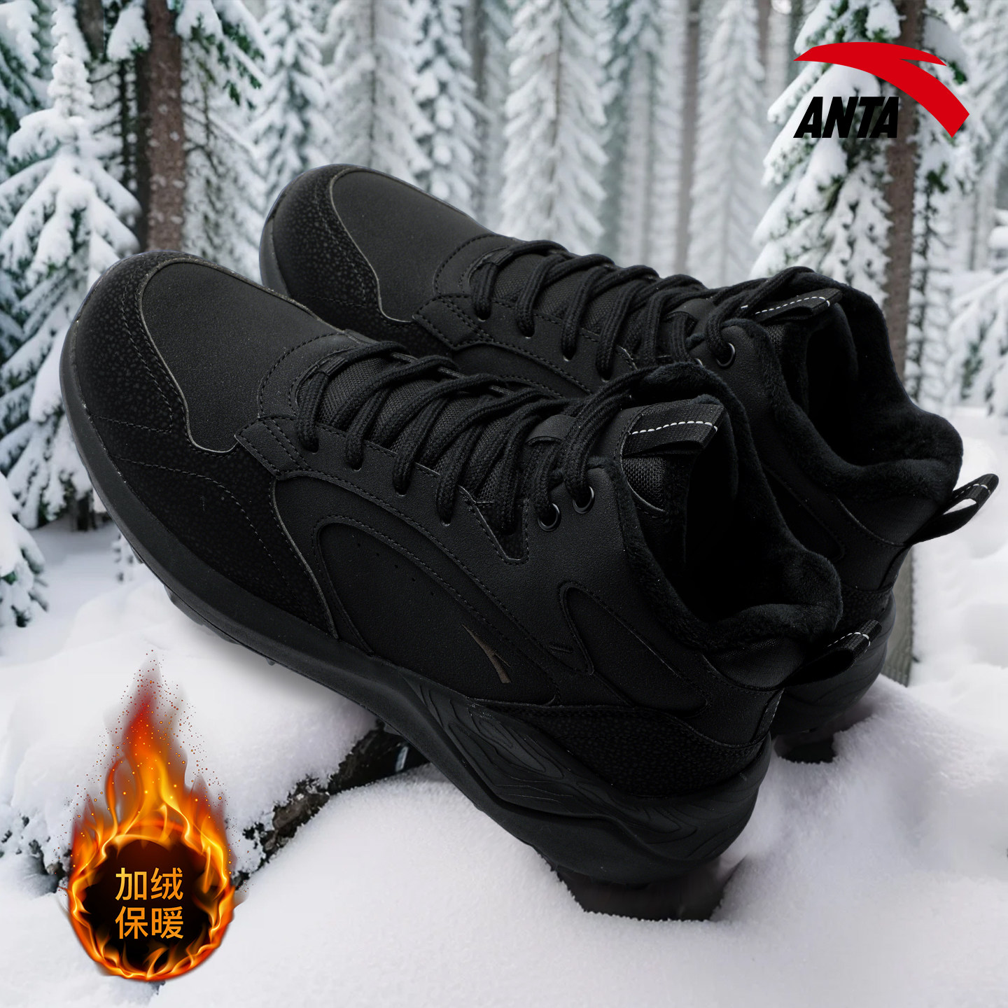安踏男鞋加绒棉鞋冬季2026新款皮面防泼水厚底防滑加厚保暖雪地靴