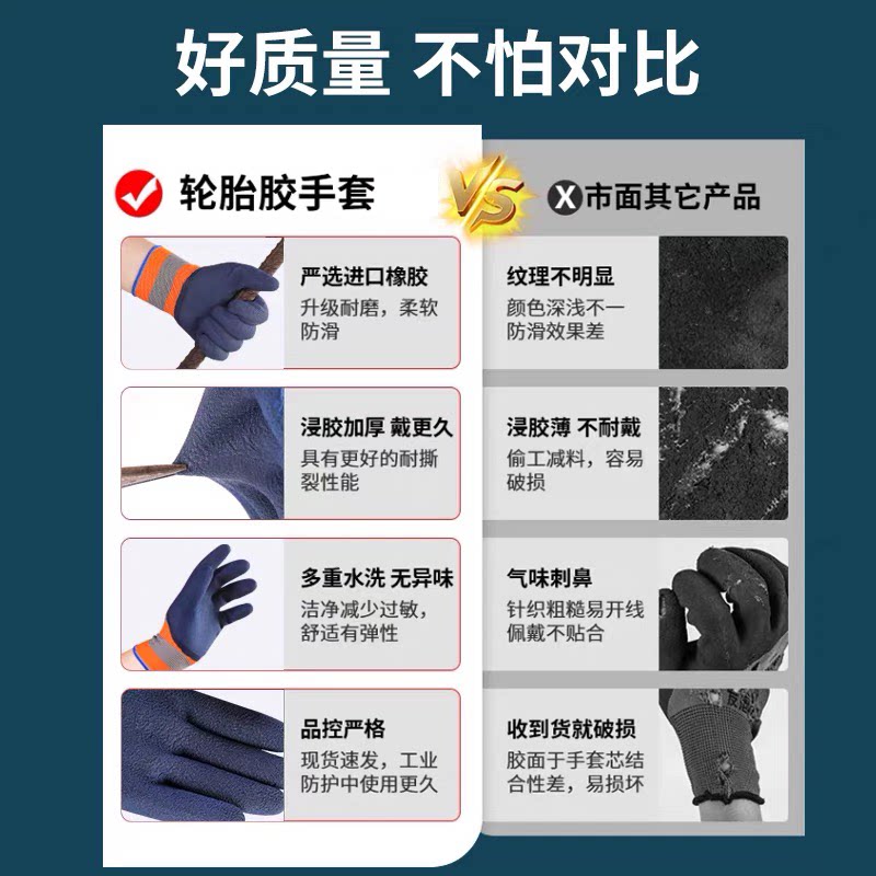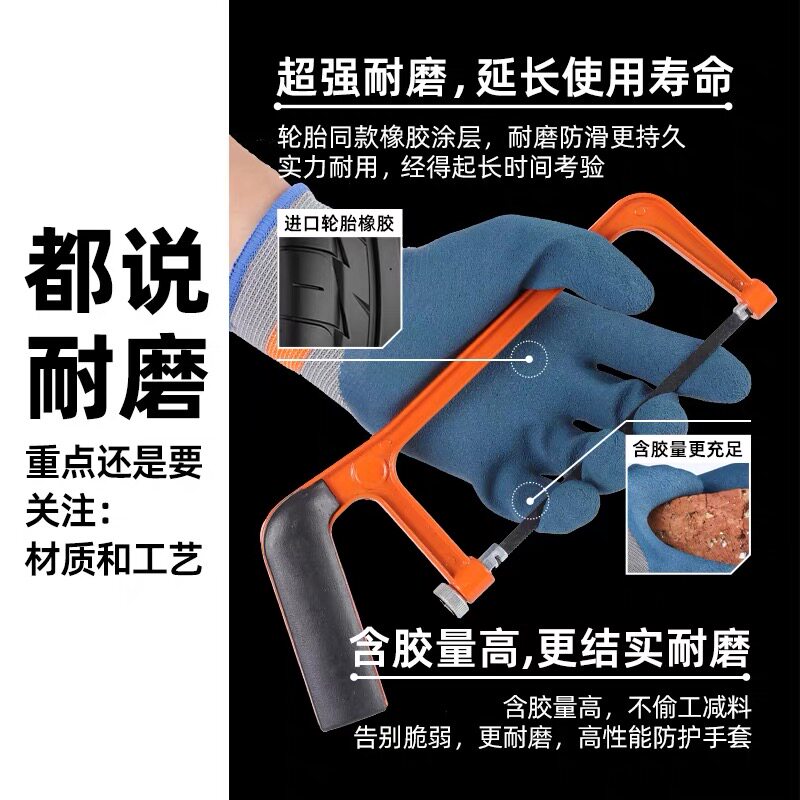 手套劳保工作耐磨轮胎橡胶耐磨王胶皮工地干活劳动尼龙浸胶防水男