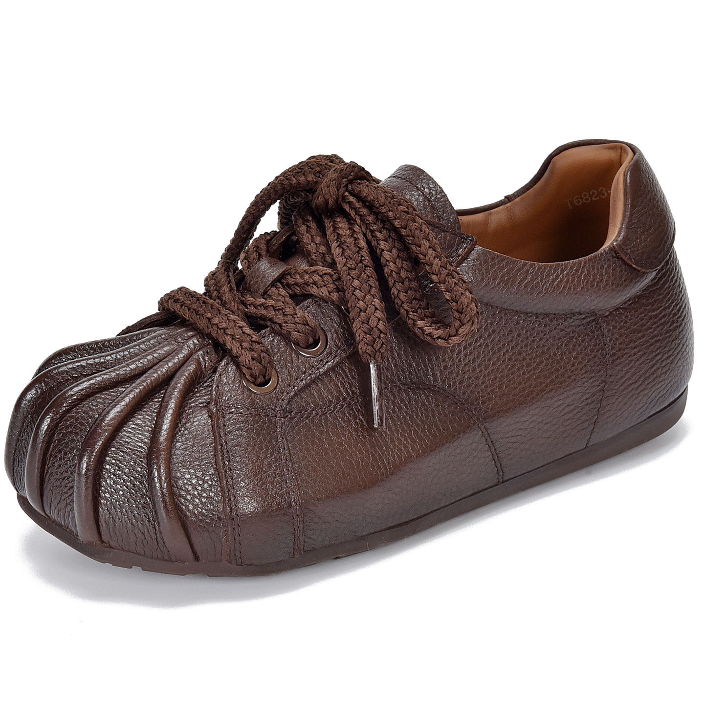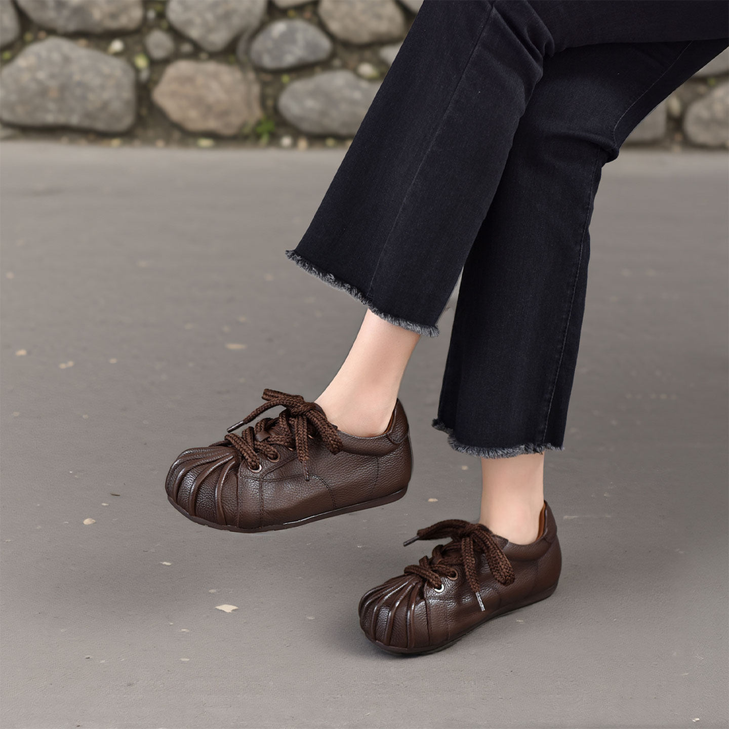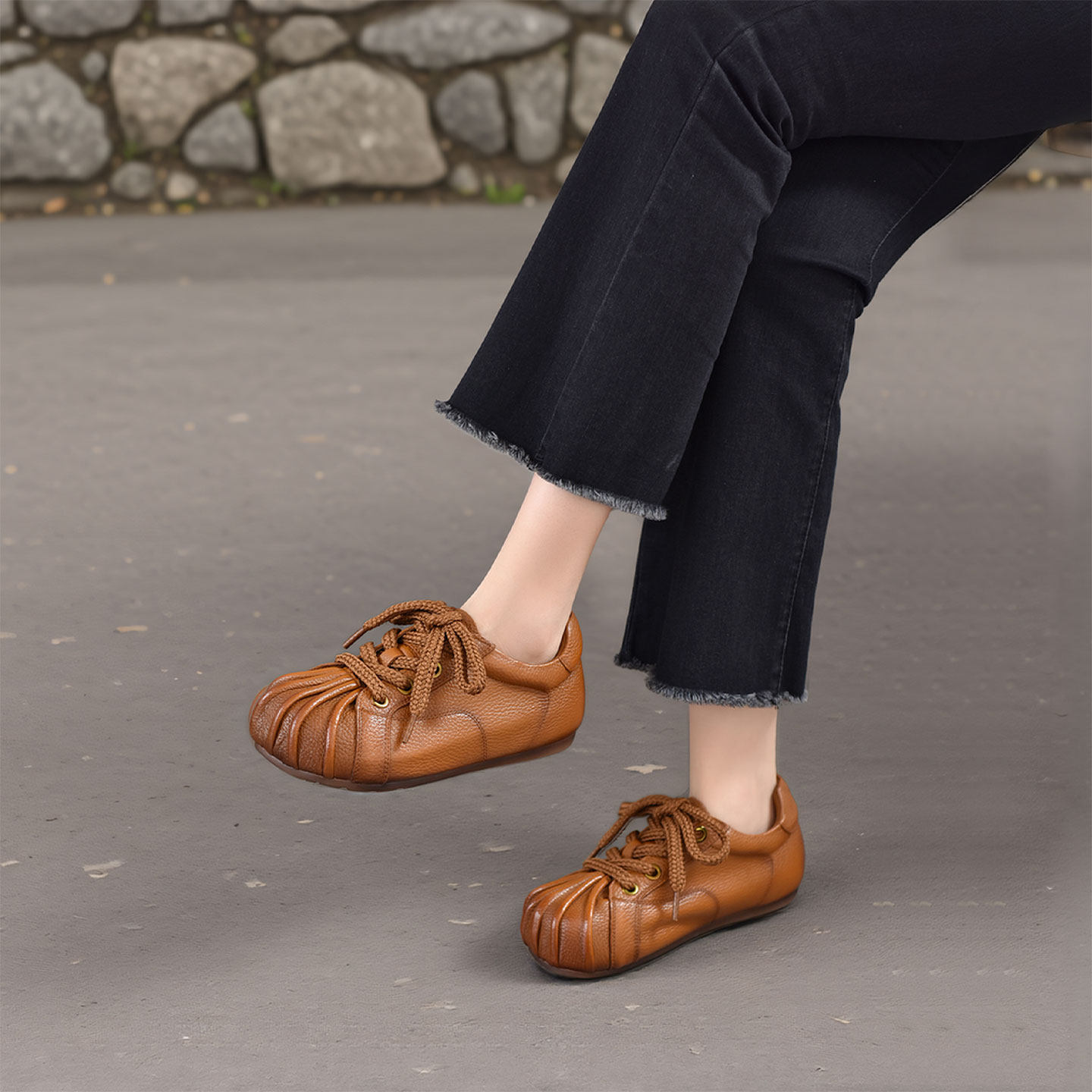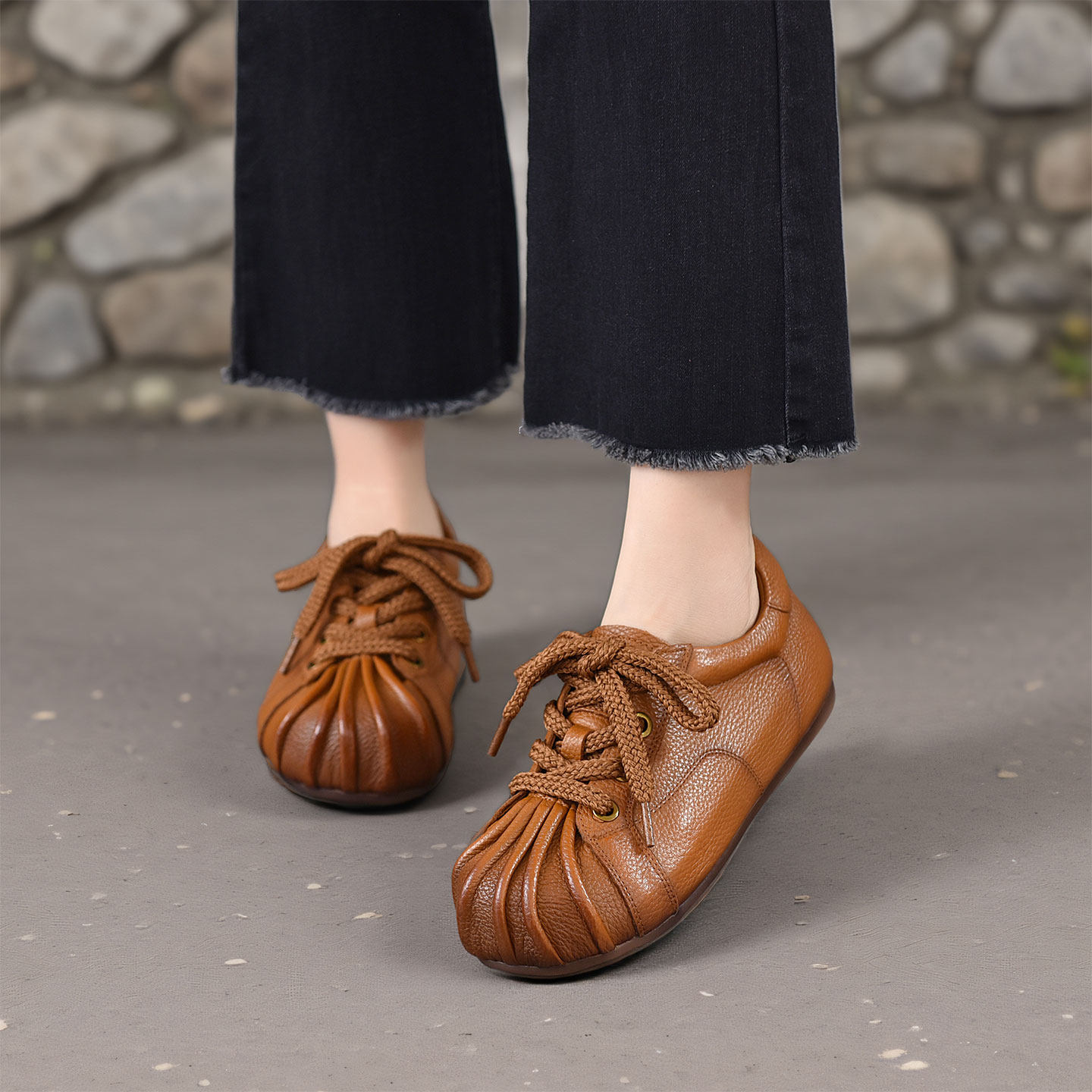 四起哥2026春复古风真皮女鞋圆头平底深口单鞋系带休闲鞋头层牛皮