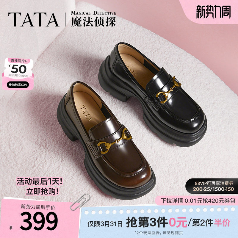李兰迪同款TATA他她魔法侦探乐福鞋女英伦风真皮小皮鞋厚底JK鞋子