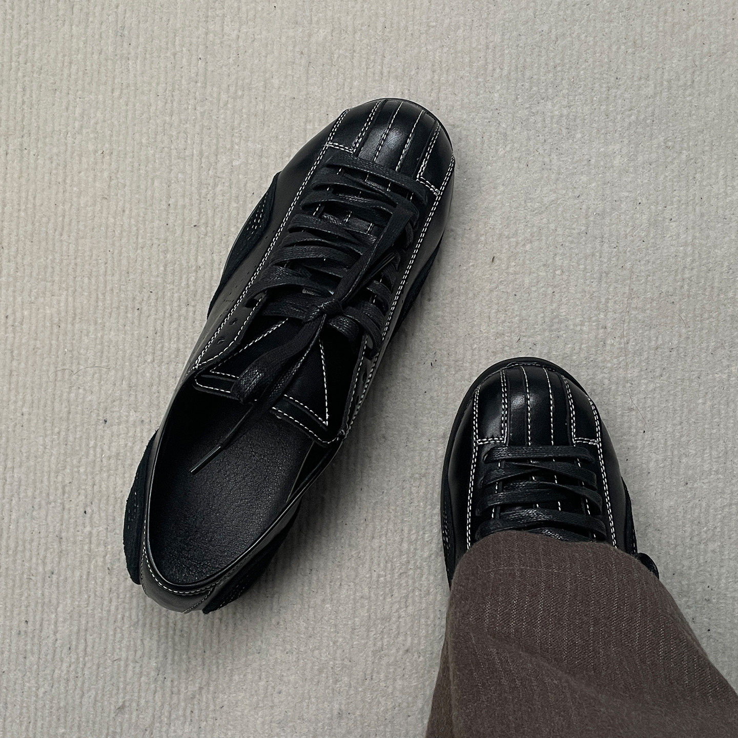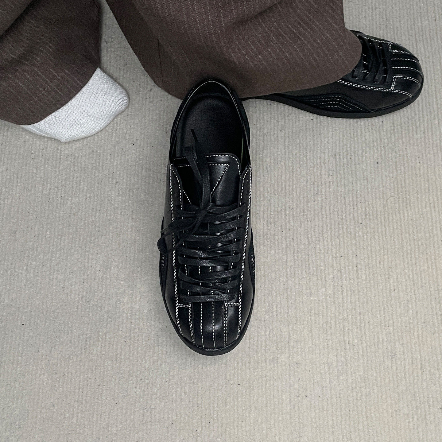 黑色德训鞋男女休闲运动鞋平底皮鞋简约轻便训练拳击鞋内增高板鞋