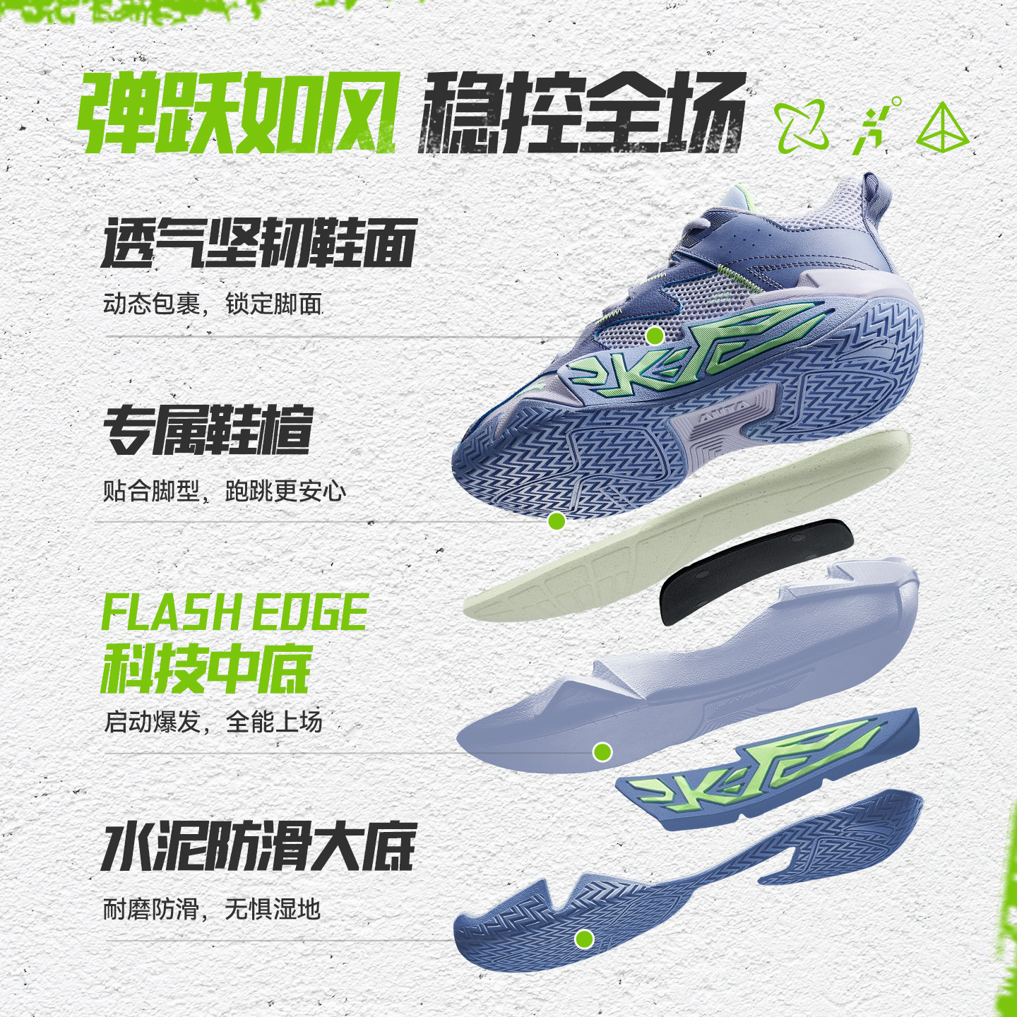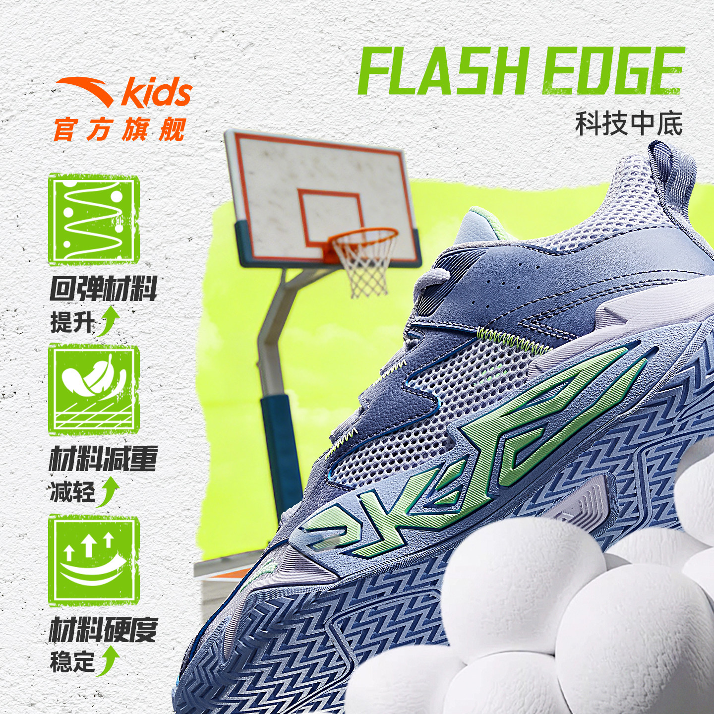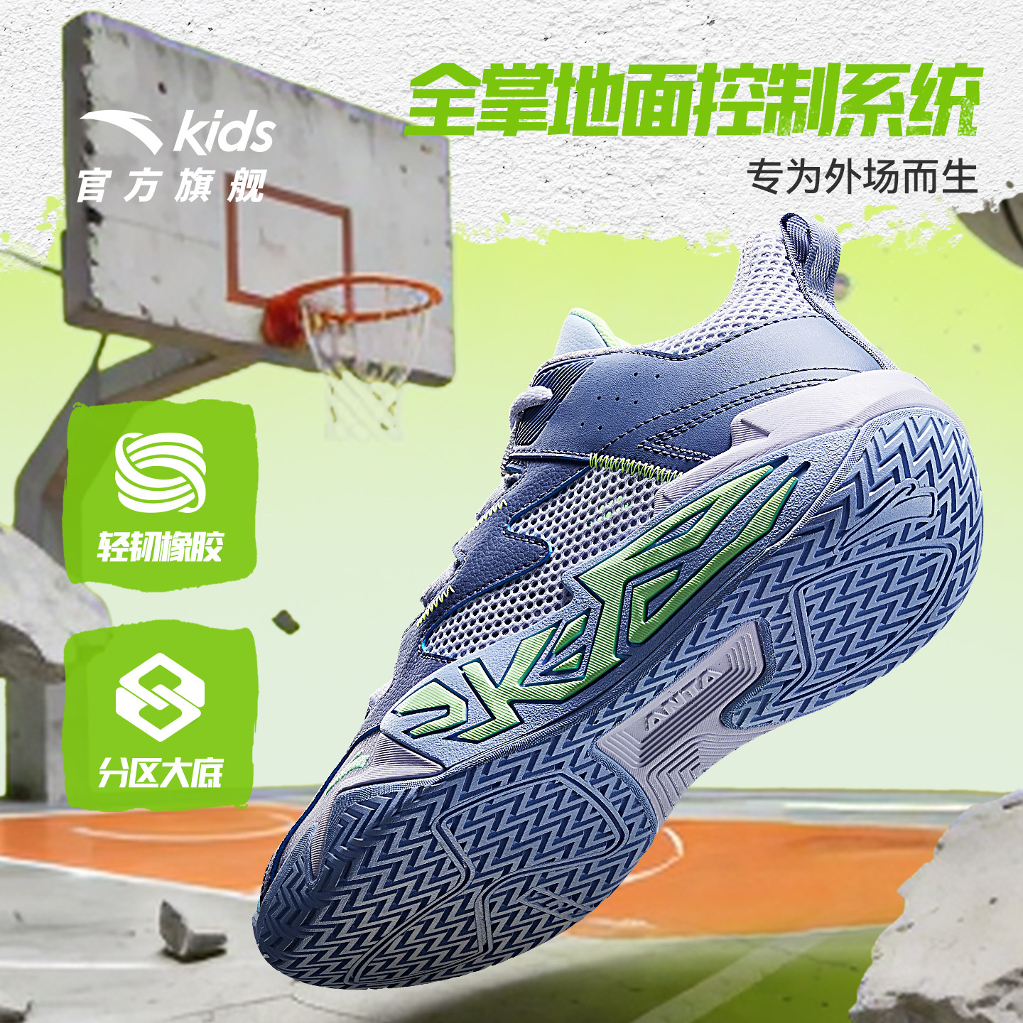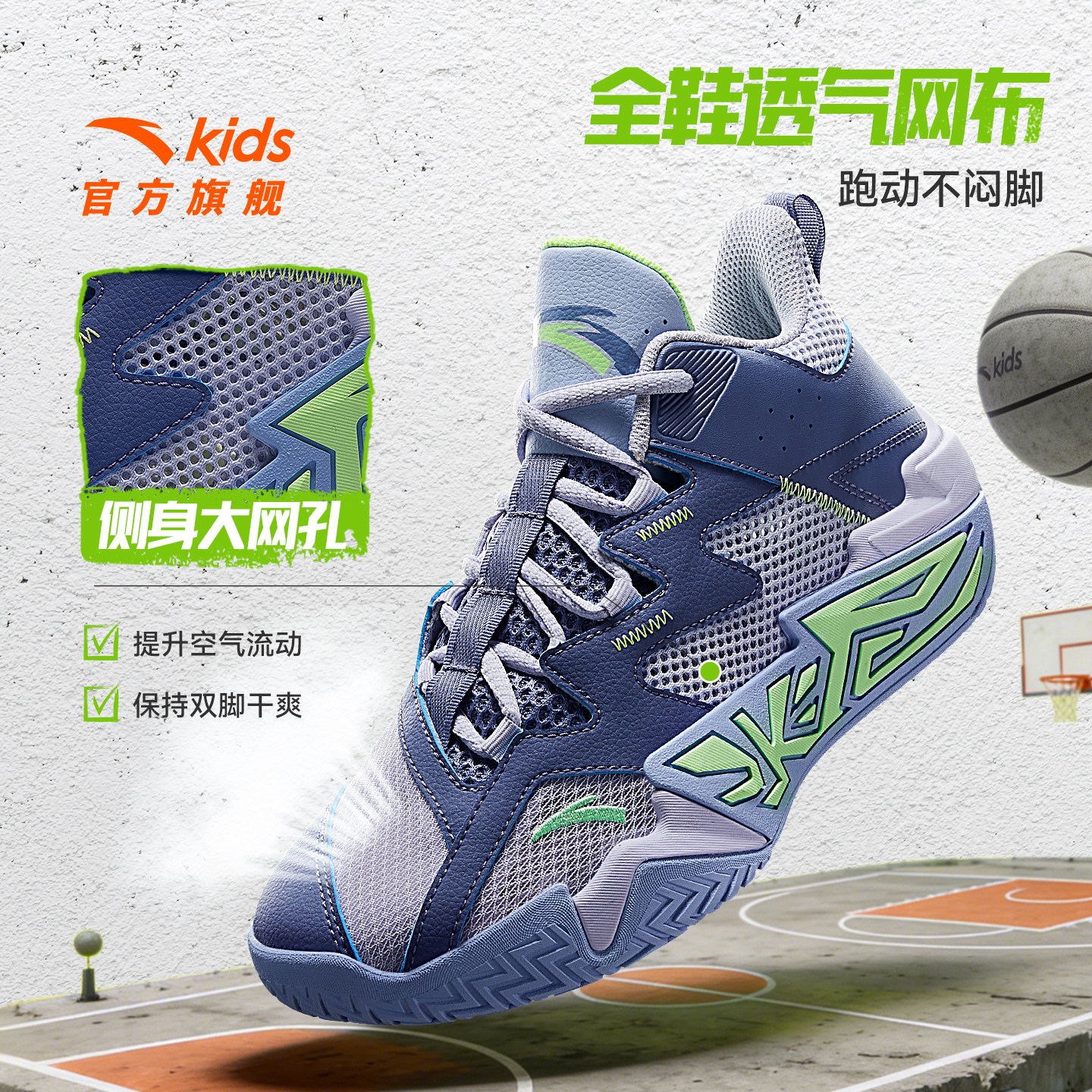 大磨王水泥|安踏儿童篮球鞋2026夏季新款防滑耐磨透气网面运动鞋