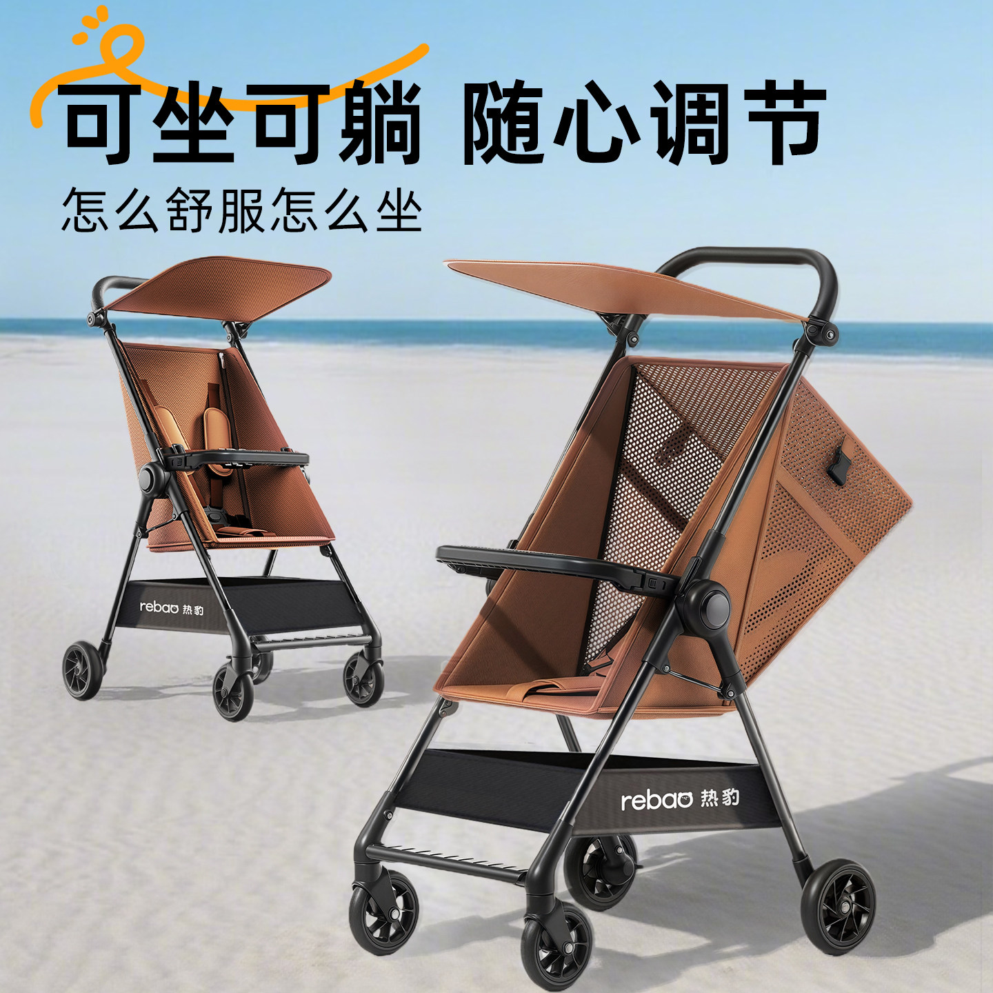 热豹T1婴儿推车可坐可躺轻便折叠0到3岁遛娃神器一键收车