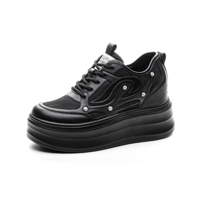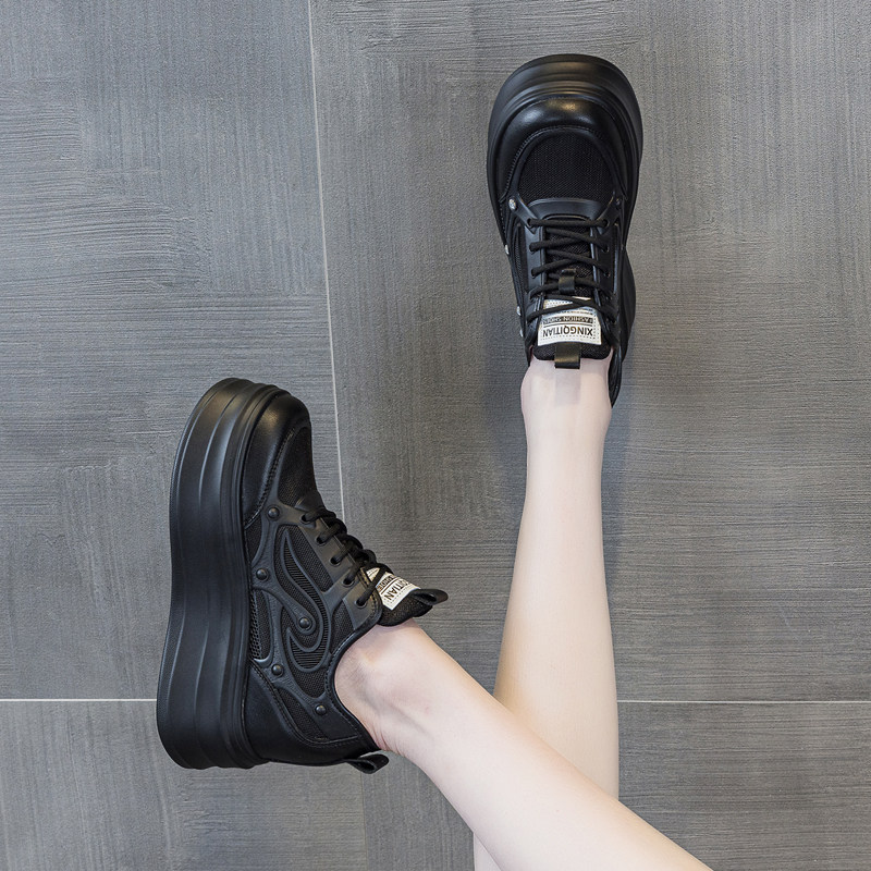 黑色内增高女鞋8cm2026新款厚底小白鞋薄款夏天休闲网鞋百搭透气