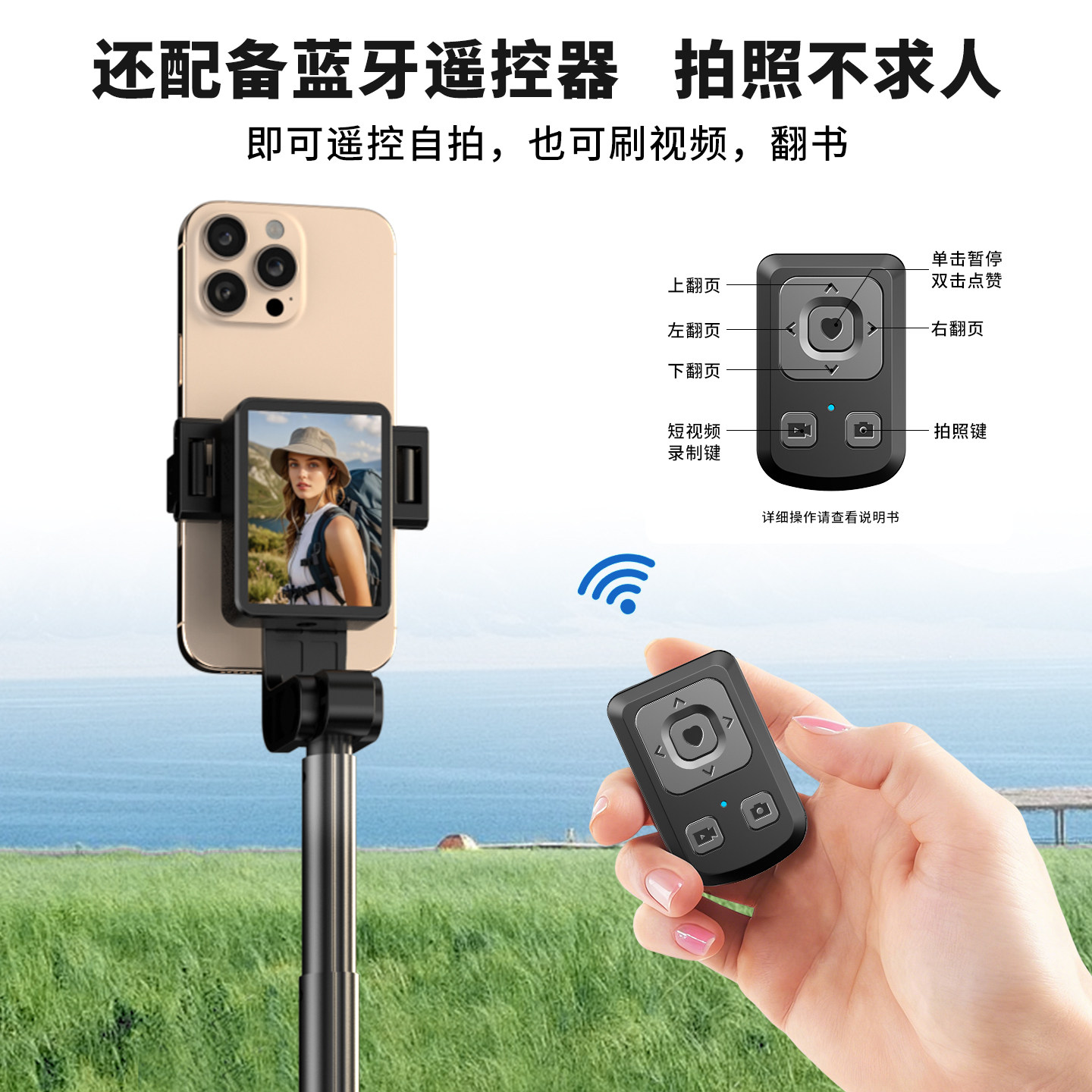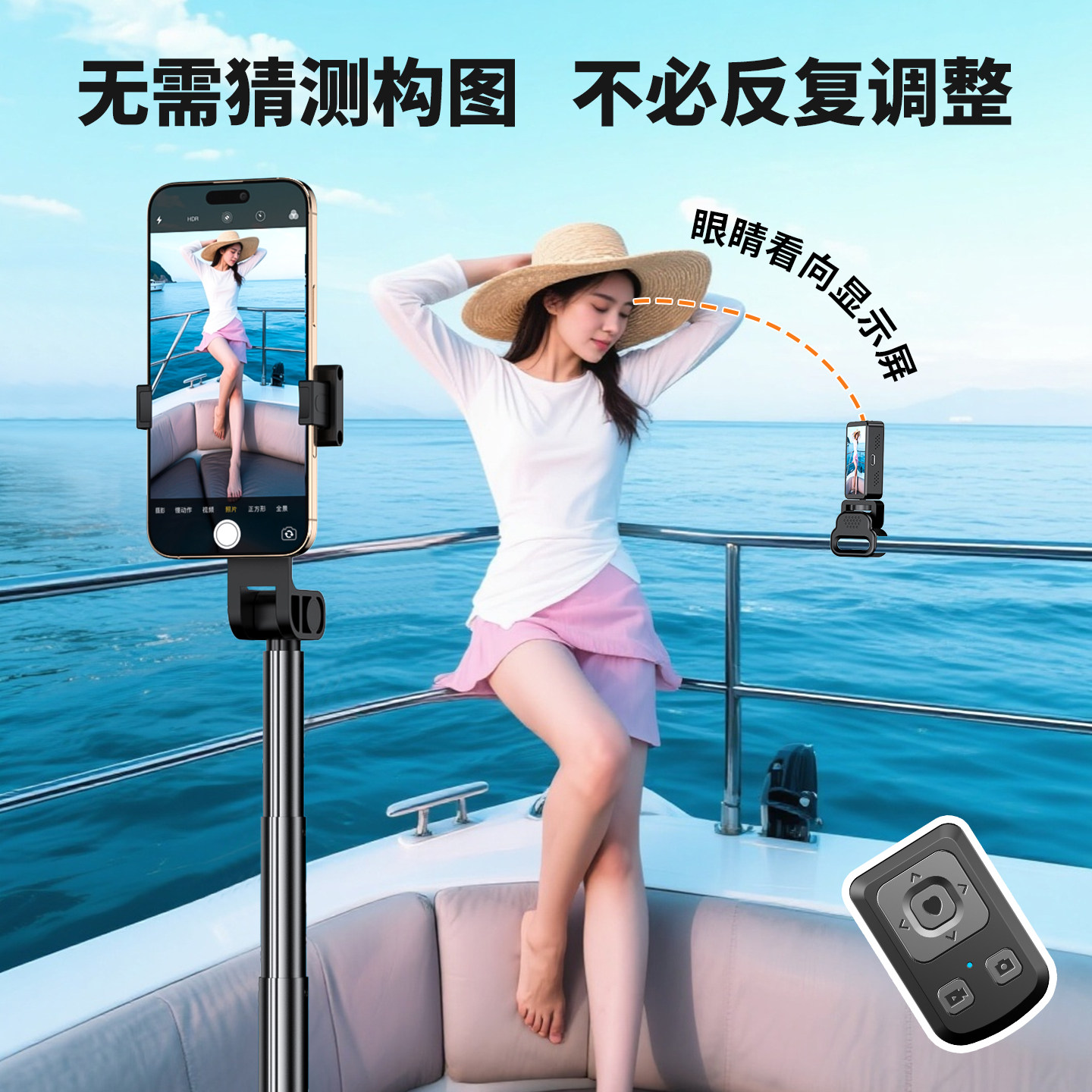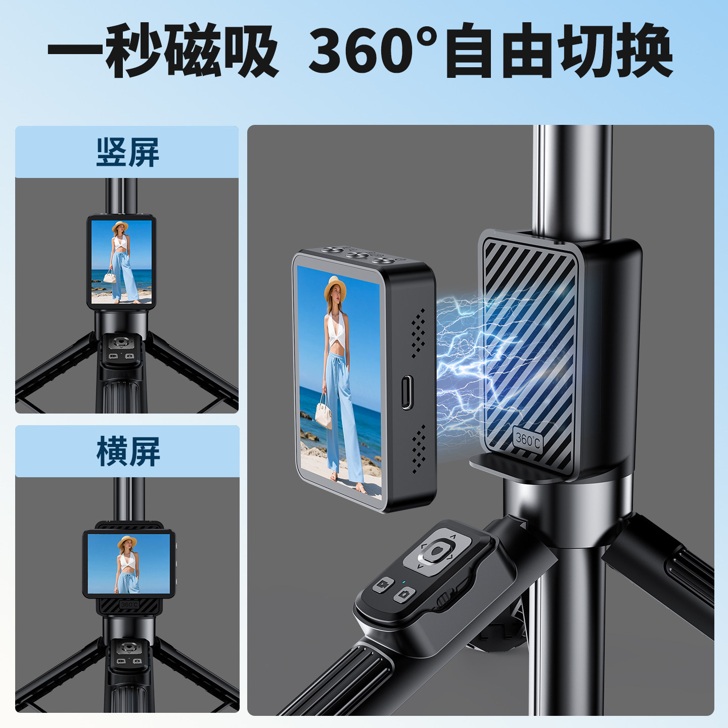 2026新款手机自拍杆投屏器后置自拍旅游便携式手持落地通用360度旋转拍照防抖支架同屏远程调焦vlog拍摄神器