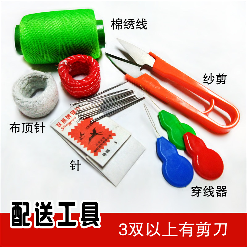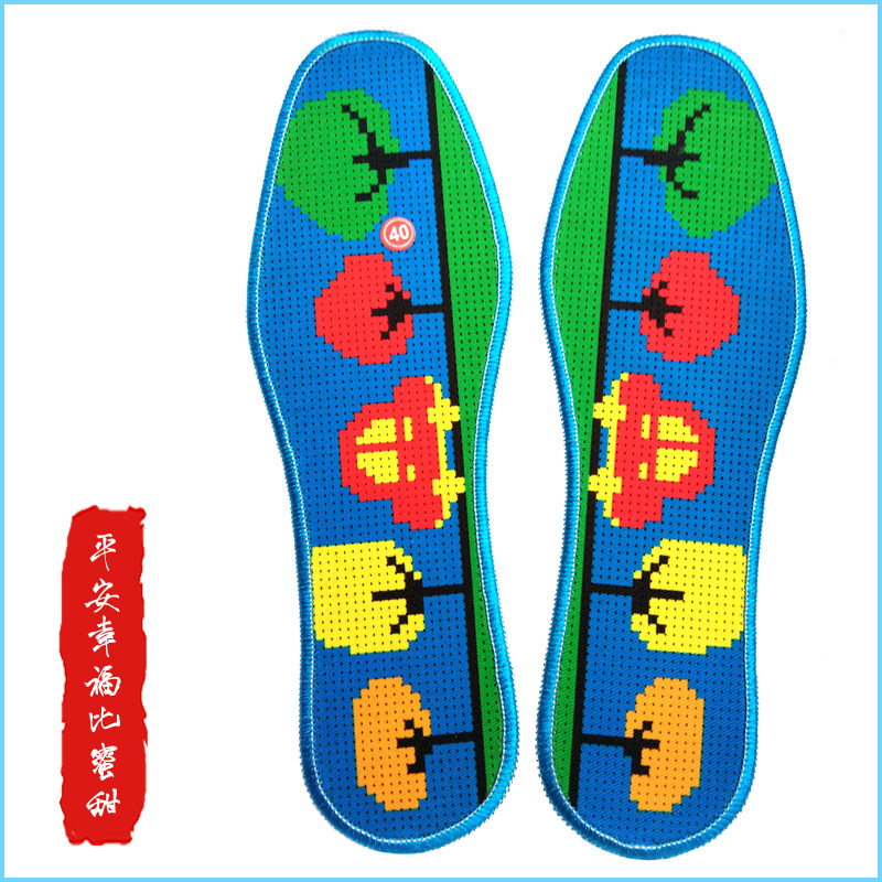 精品新款手工自绣满绣不退色半成品纯棉布印花针孔十字绣鞋垫平安