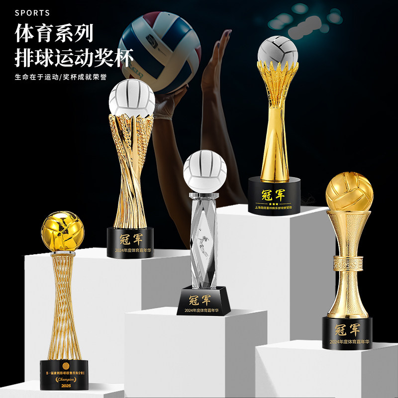 创意高档金属气排球奖杯定制定做水晶职工校园运动会比赛冠军颁奖