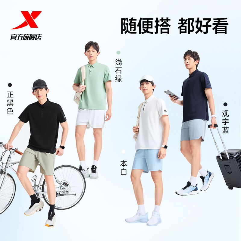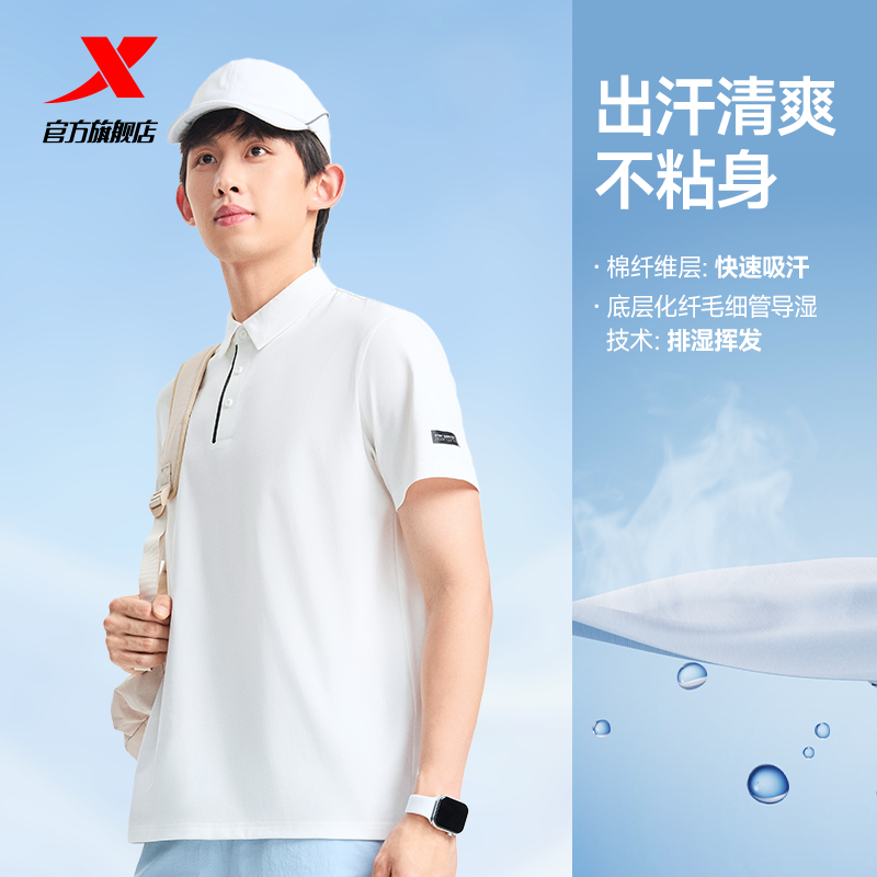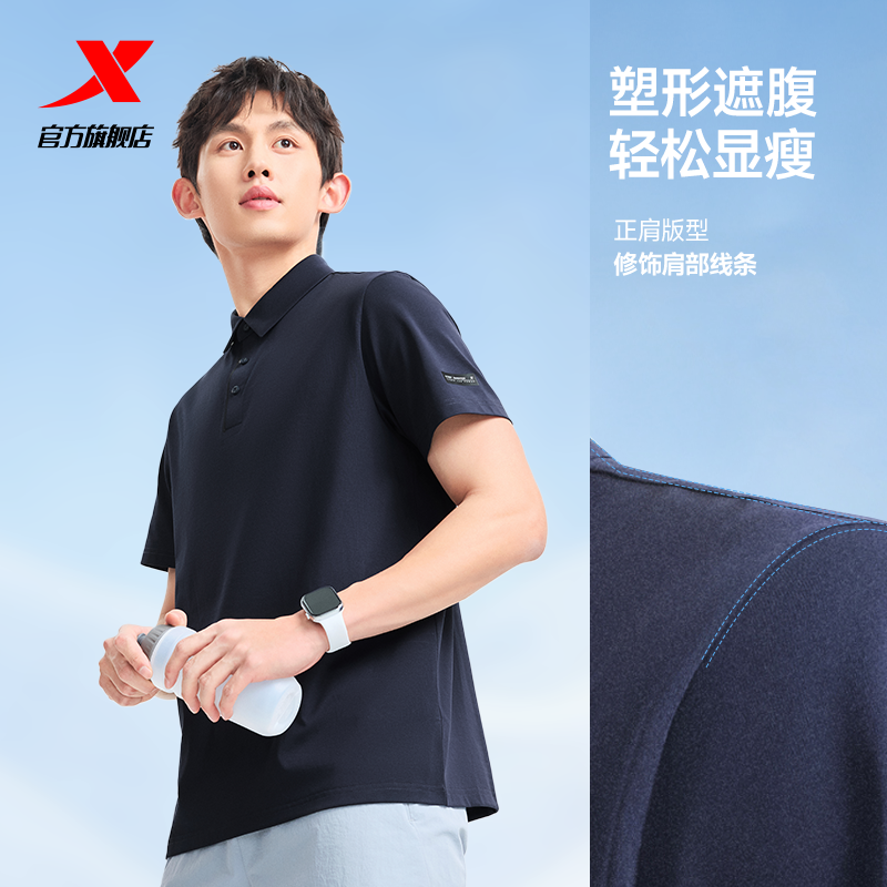 特步大师POLO衫男2026年夏季休闲易打理遮腹运动冰丝短袖翻领T恤