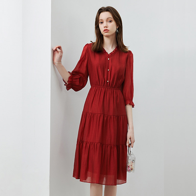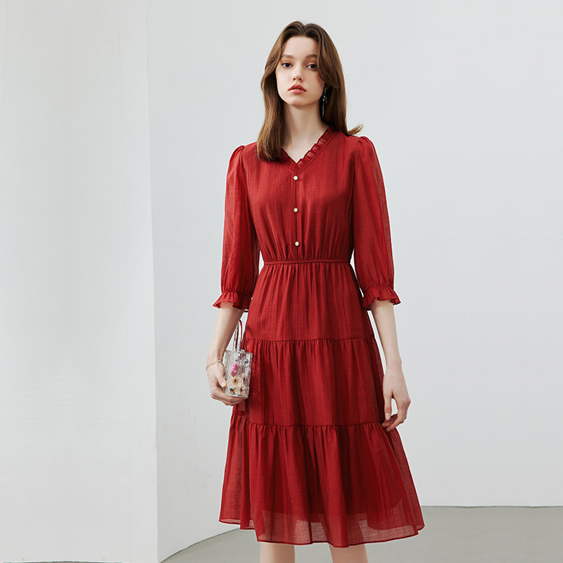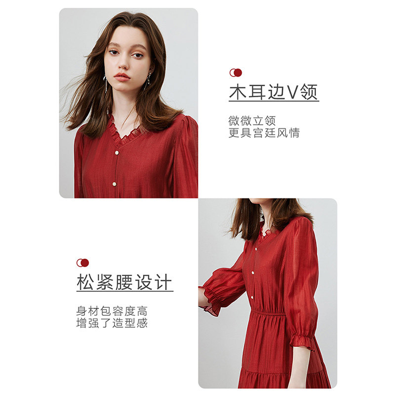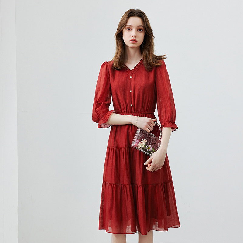 KBNE连衣裙女白色小个子长裙2024新款气质法式V领中袖莱赛尔裙子
