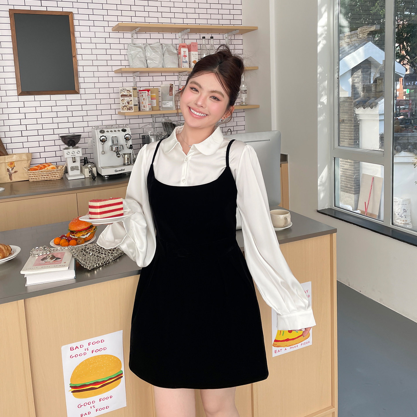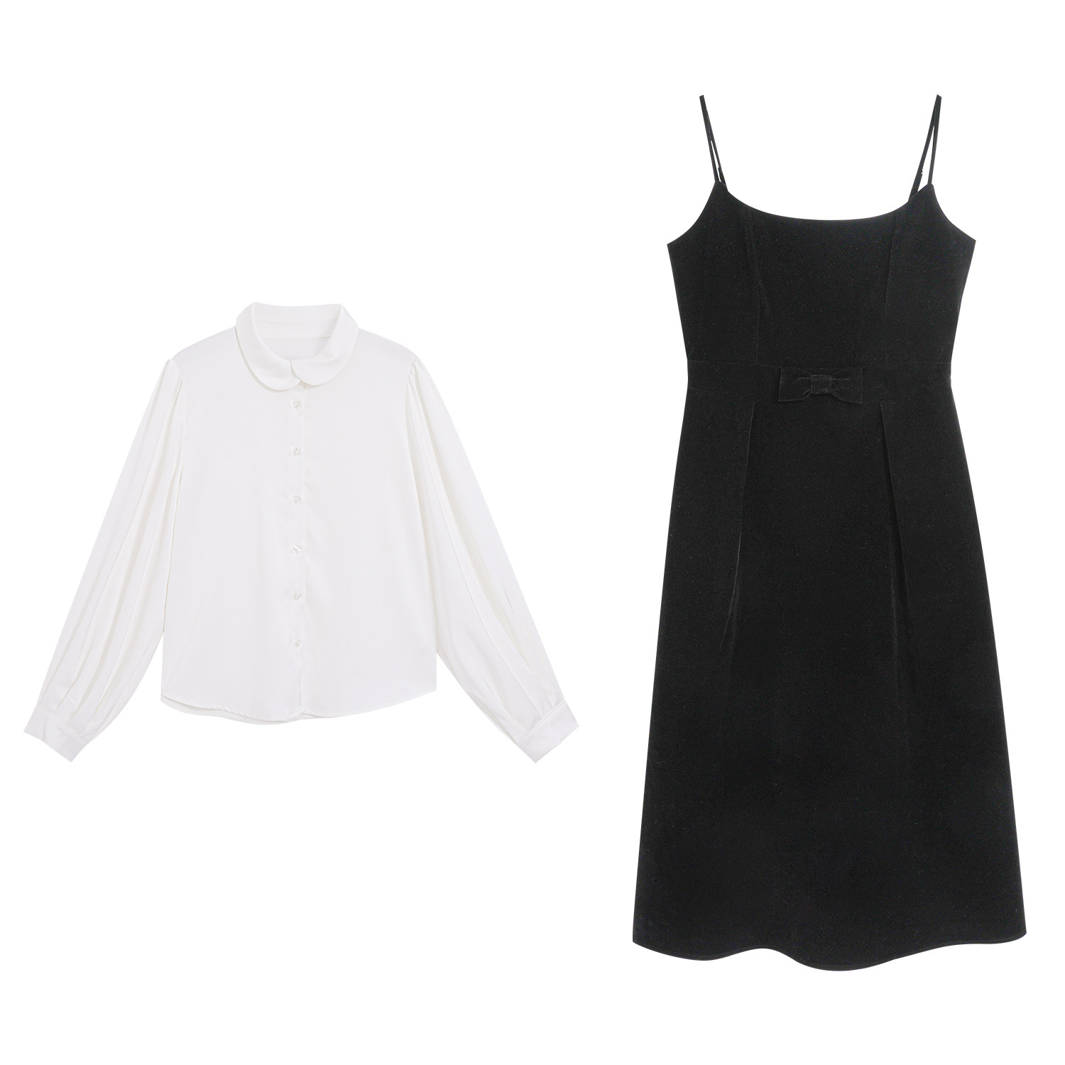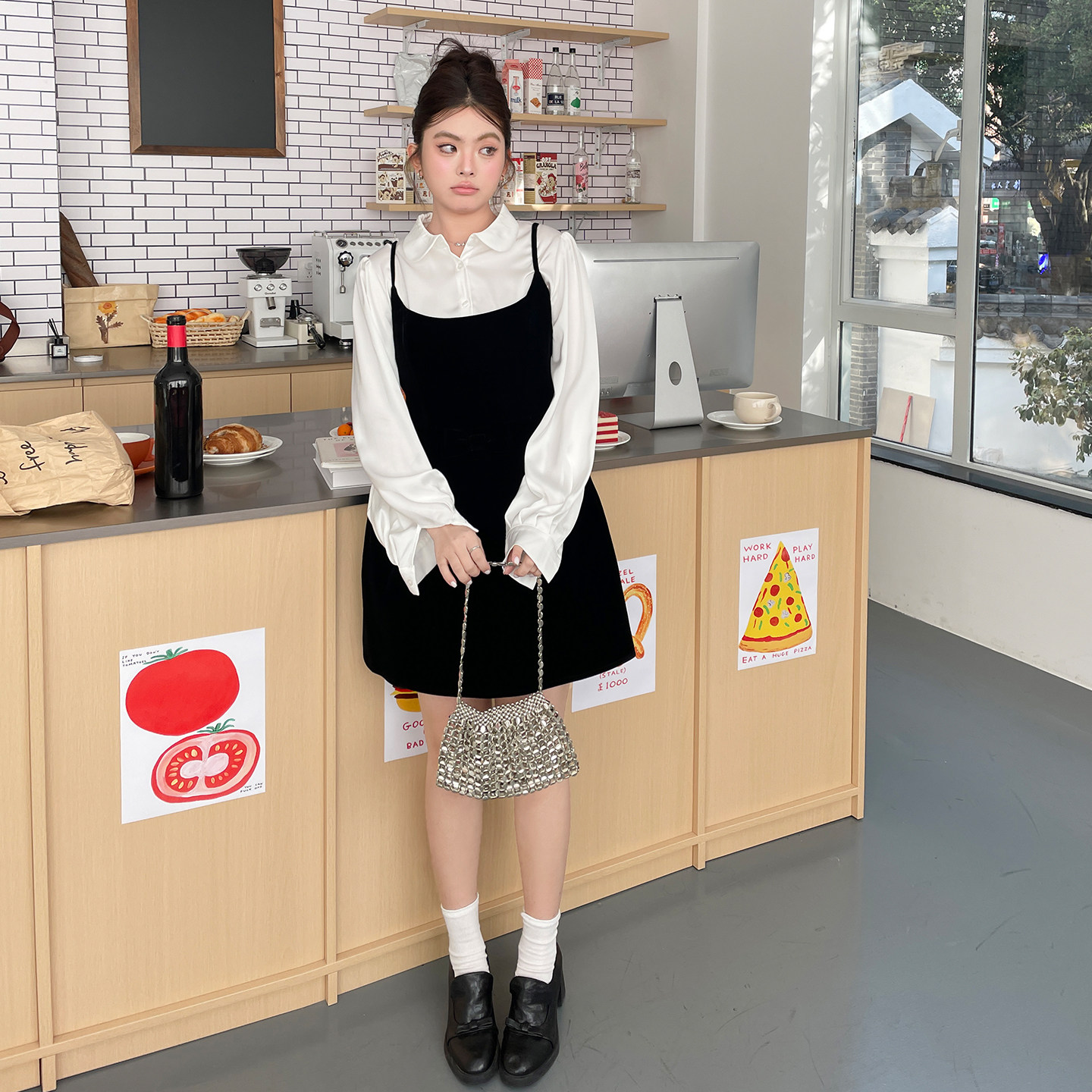春季穿搭大码女装胖mm显瘦千金风衬衫吊带连衣裙套装小洋装两件套