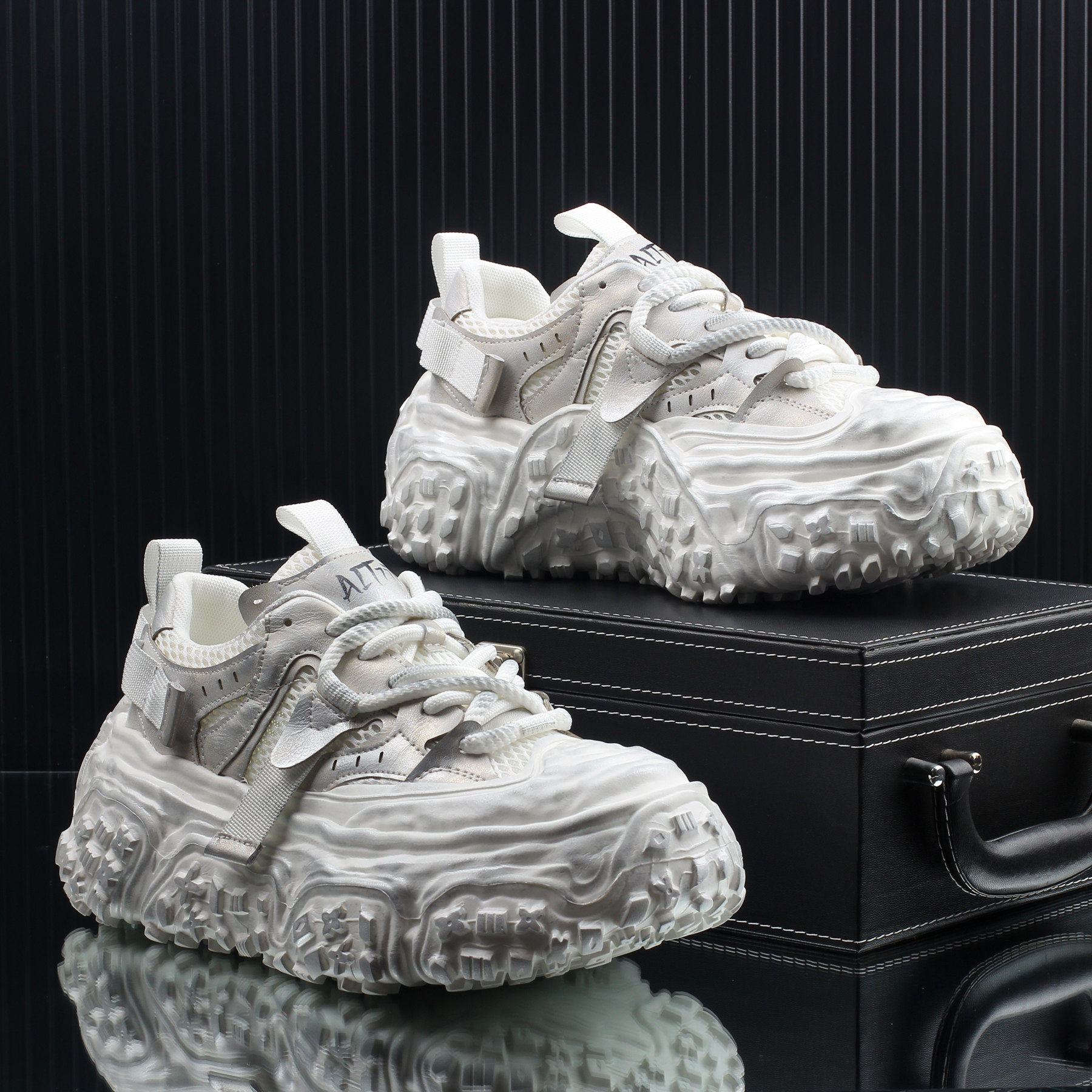 2025秋季新款厚底增高老爹鞋男款网面透气百搭休闲鞋高级感男鞋子