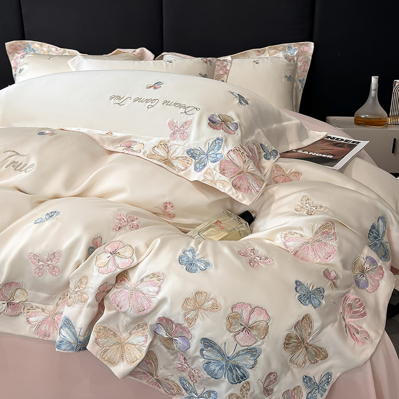 轻奢高级感A类冰丝四件套丝滑裸睡被套夏天床单夏季床笠床上用品4