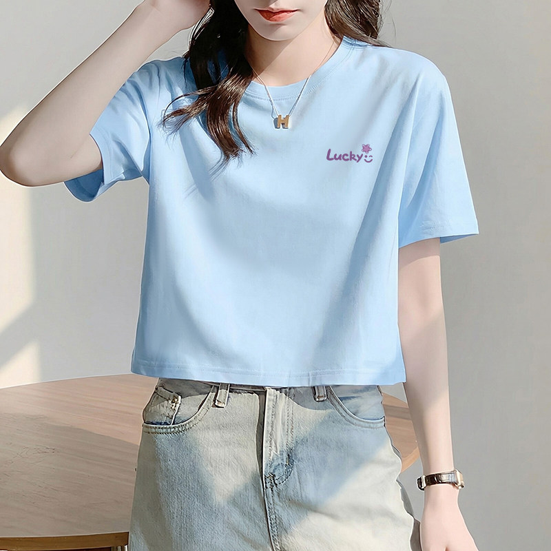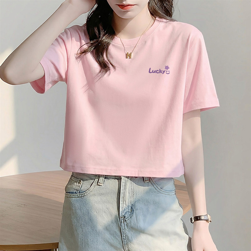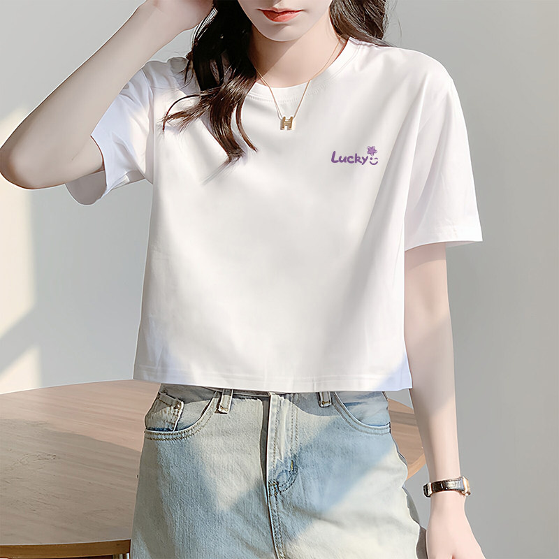 NOE真维斯青少年紫色纯棉短袖女t恤夏2026新款小个子短款正肩上衣