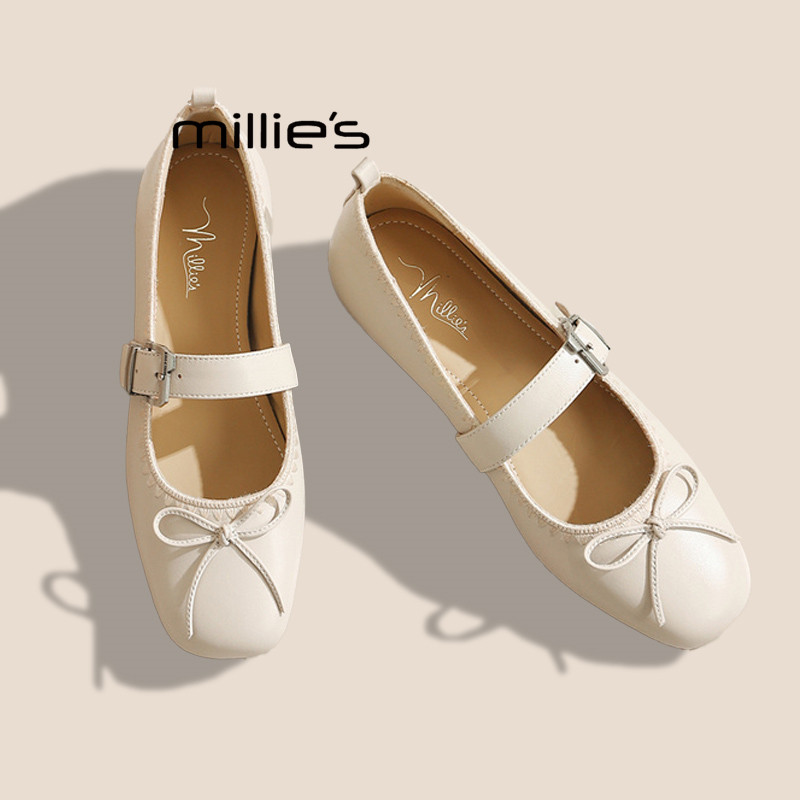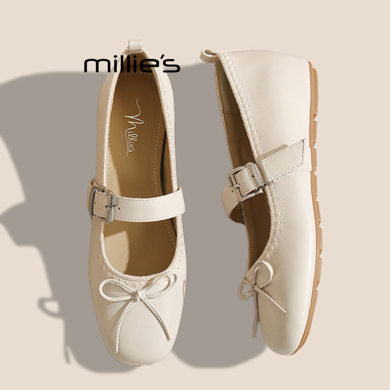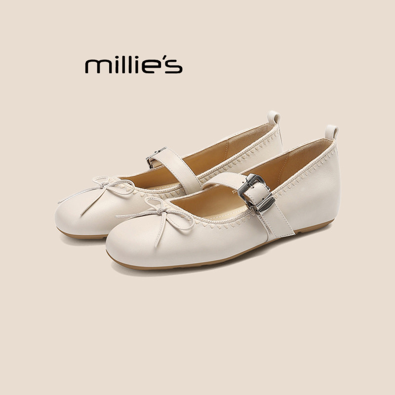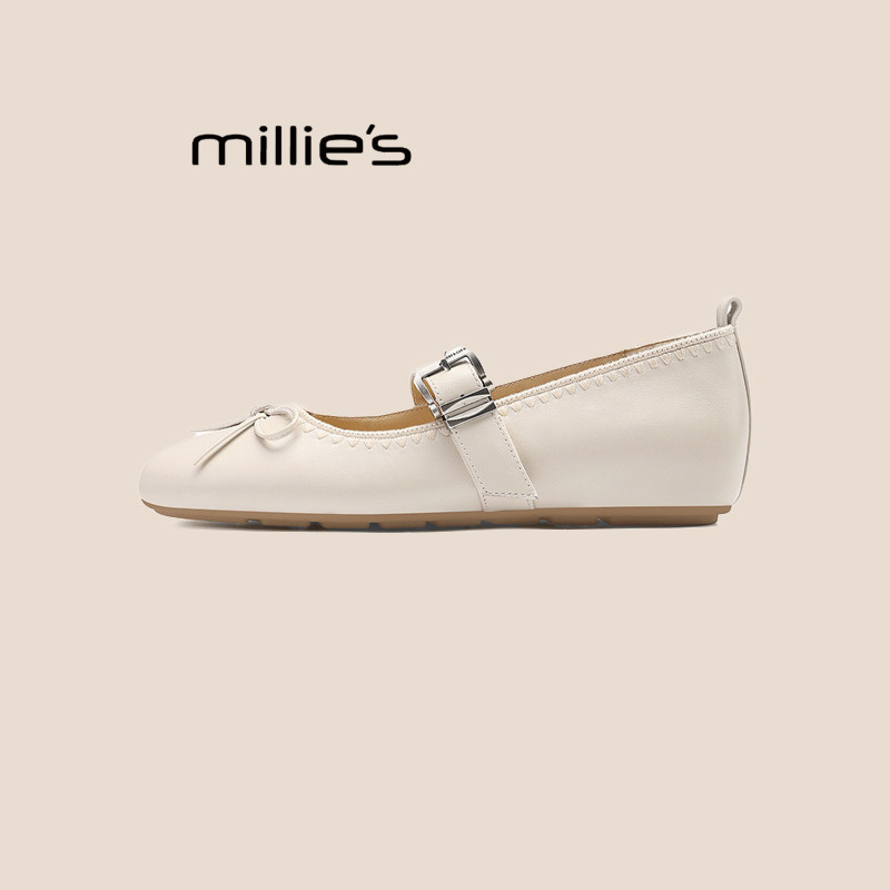 MILLIE'S/妙丽2026新品真皮内增高玛丽珍鞋女芭蕾风一脚蹬单鞋P