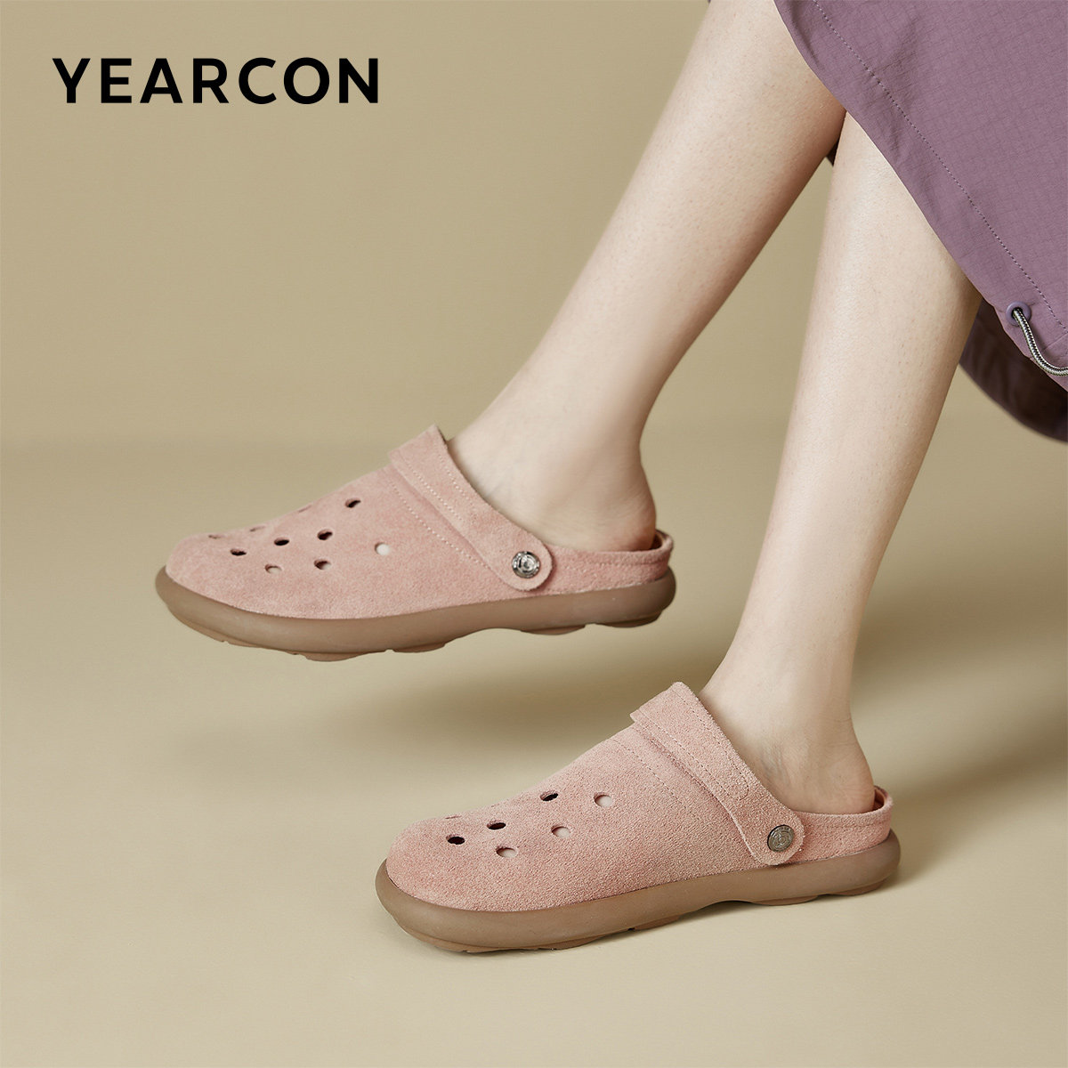 意尔康真皮通勤博肯鞋女2026夏季新款软底不累脚一脚蹬懒人洞洞拖