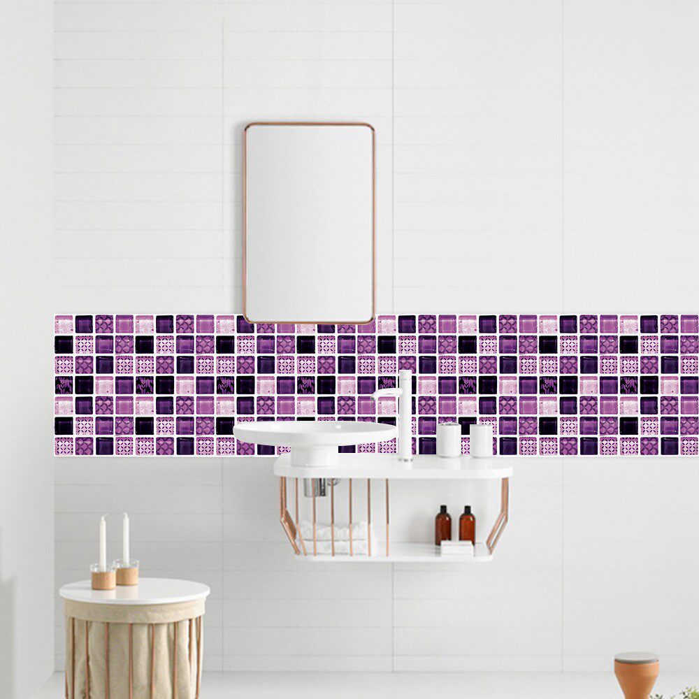 深紫色马赛克仿瓷砖贴美缝楼梯客厅厨房浴室墙面装饰画自粘墙贴纸