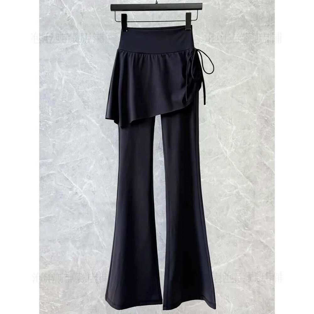瑜伽裤带屁帘套装假两件瑜伽裤微喇女遮挡裙喇叭健身裙子的裤子11