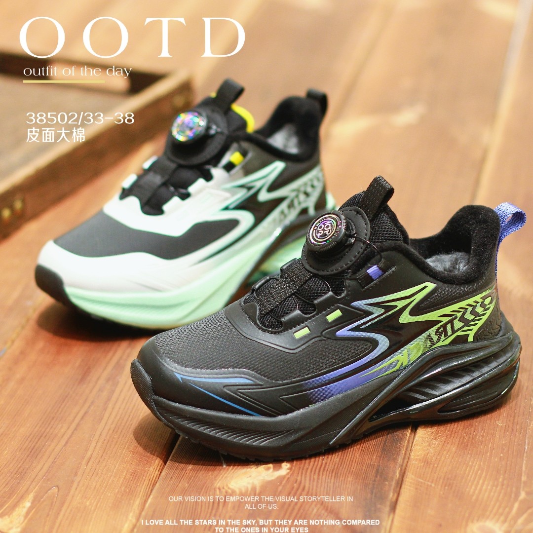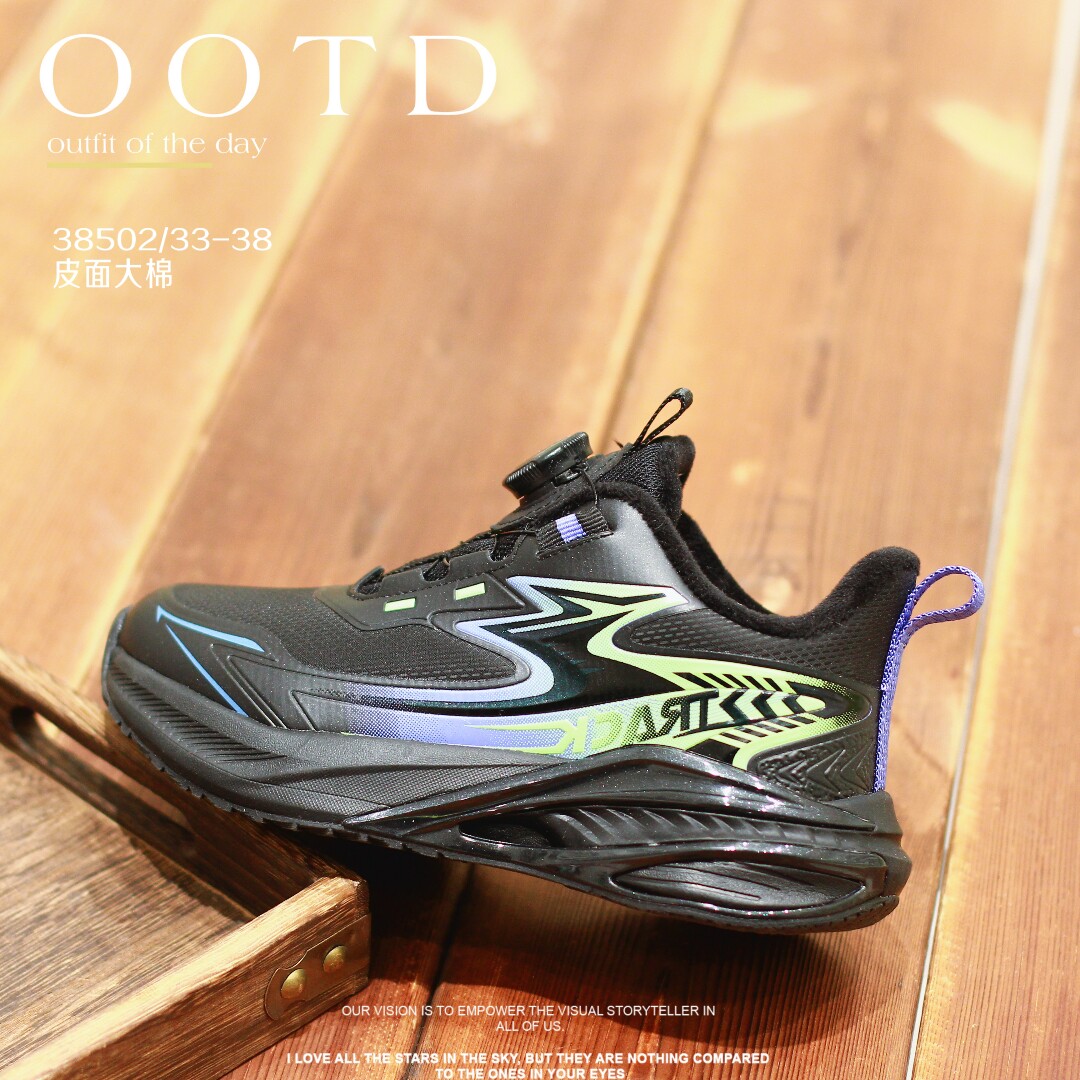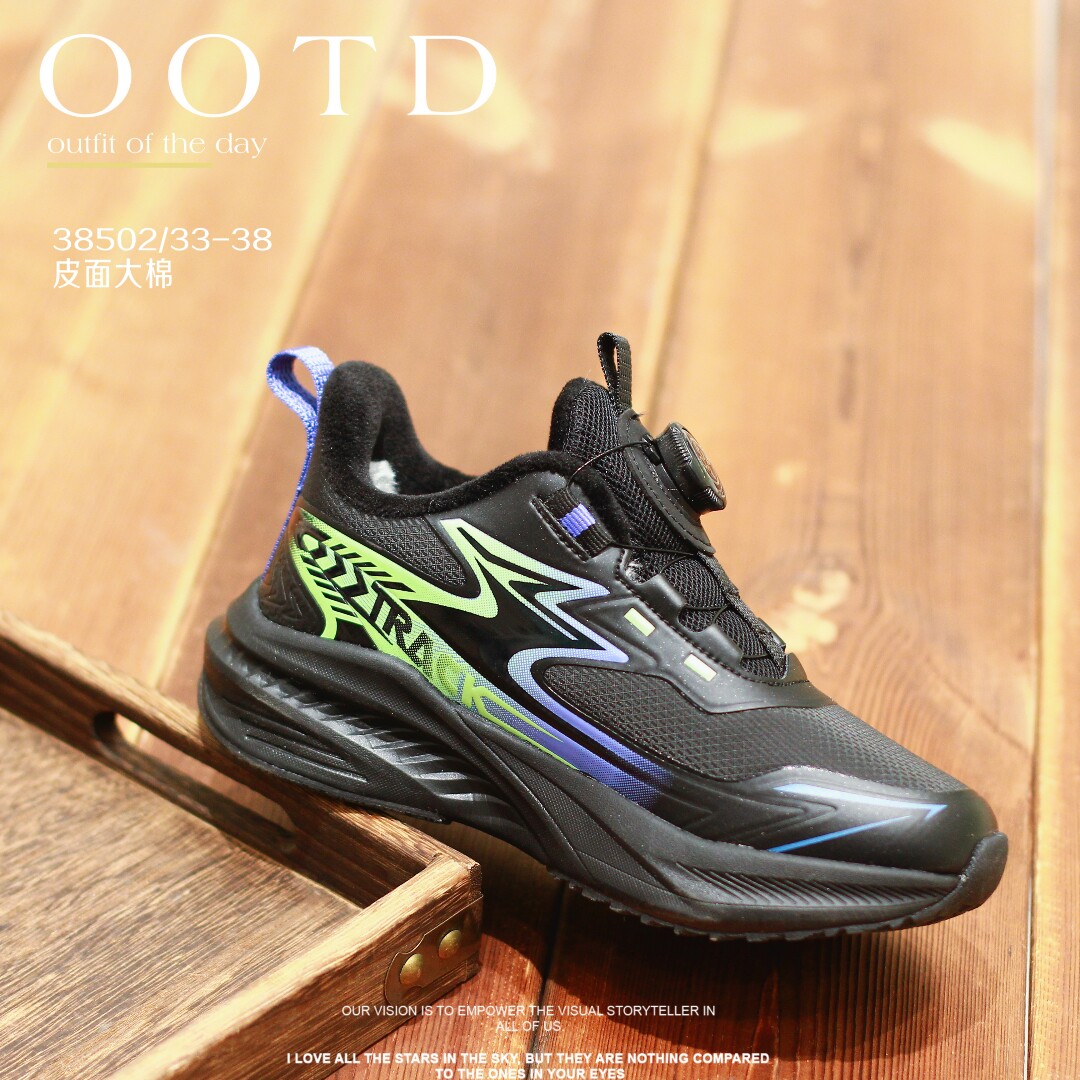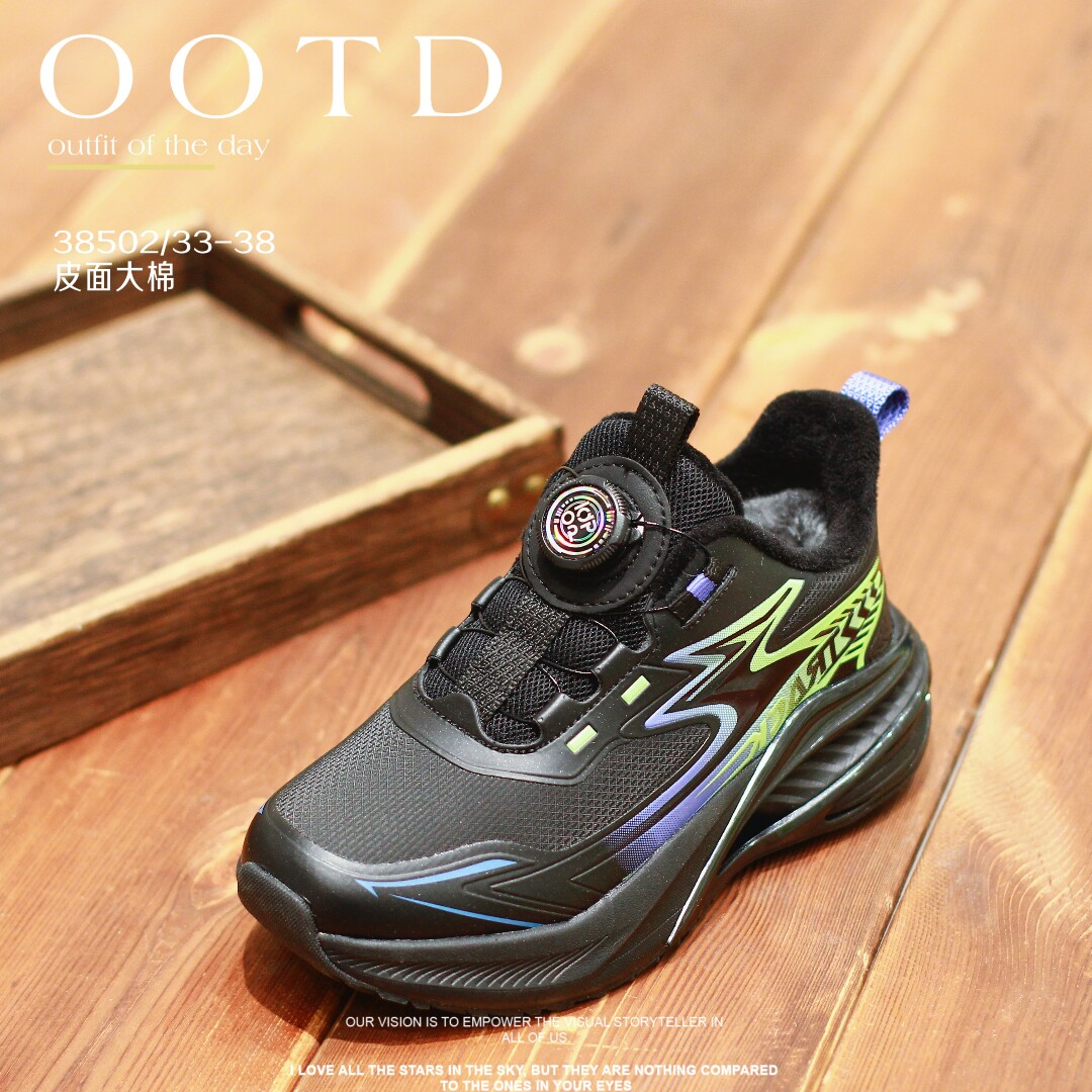 蝌蚪宝贝男童运动鞋2025秋冬款加绒防滑青少年鞋子旋钮儿童跑步鞋