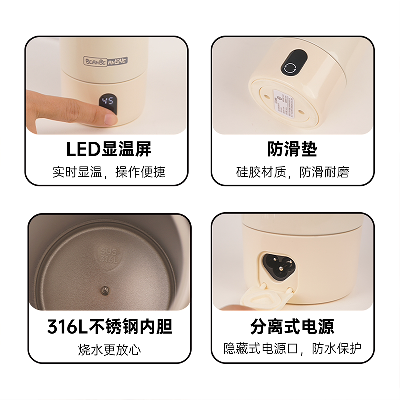 BEANBEANLOVE400ml便携式316L烧水杯五档调温加热水杯