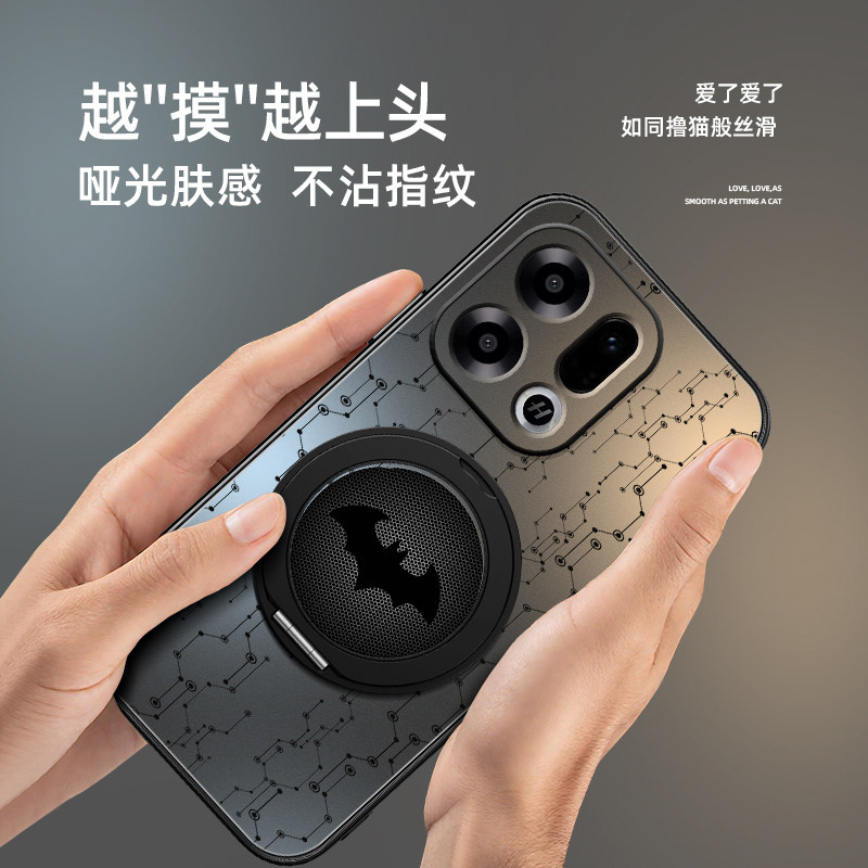 适用oppoFindx9手机壳新款Findx9pro保护套防摔旋转支架磁吸亚克力磨砂哑光超薄肤感男款女蝙蝠