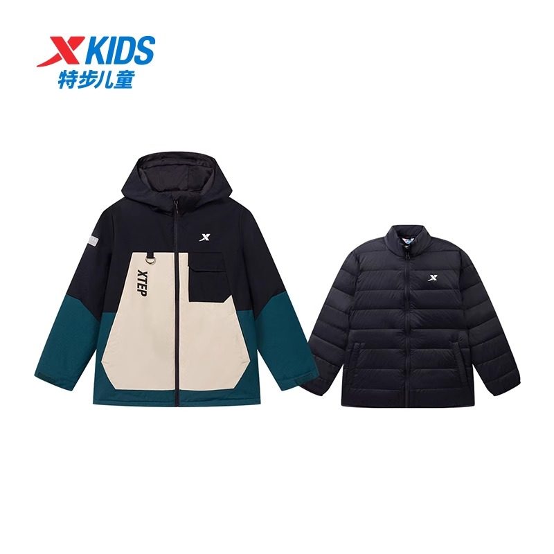 特步儿童男童羽绒服小暖阳冲锋衣三合一中大童外套6754251C4115