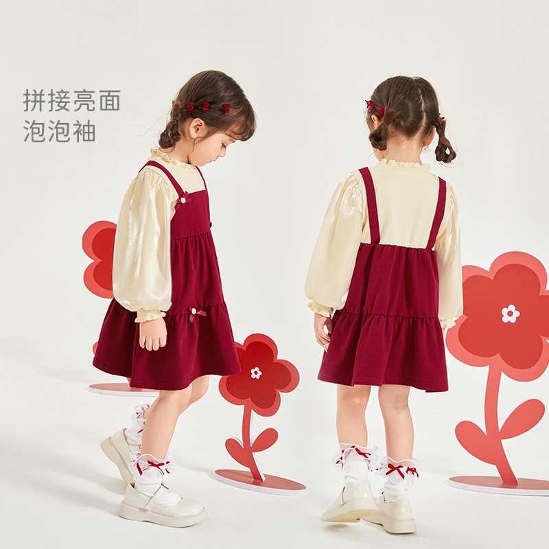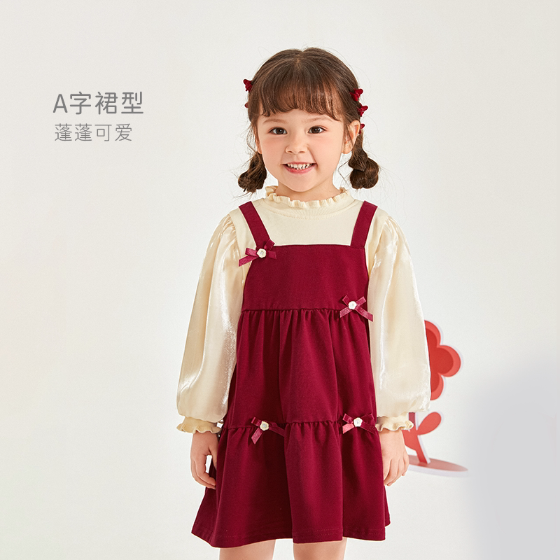 连衣裙红色女童儿童礼服裙春秋小童春装公主裙周岁生日宝宝裙子春