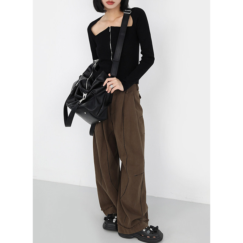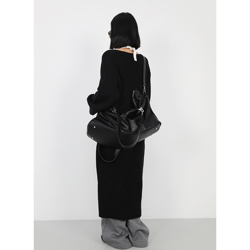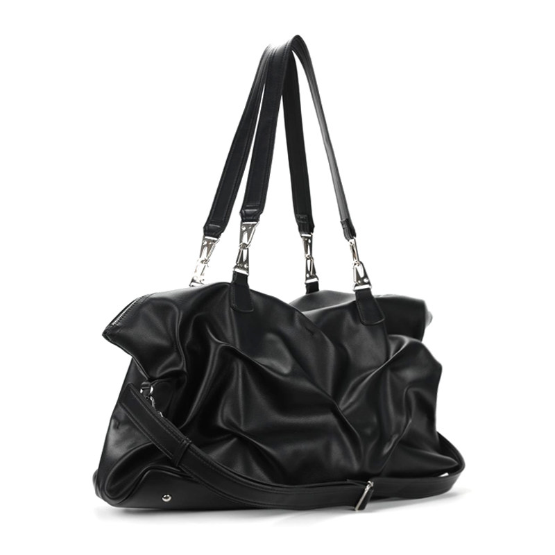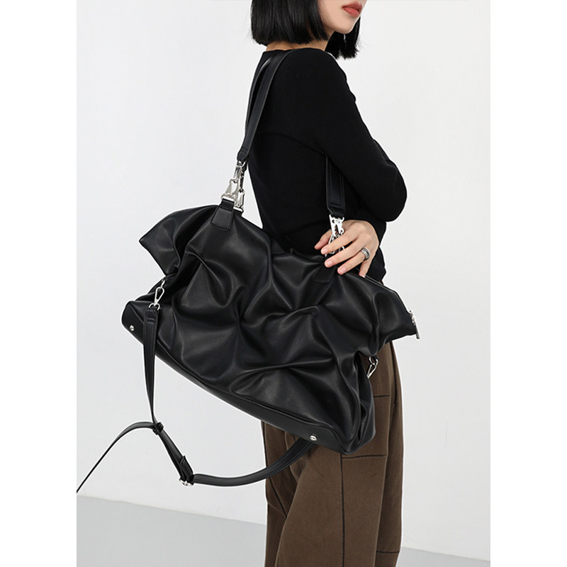 简着 /原创 赛司褶皱感街头斜挎包 黑色大容量单肩短途旅行包包