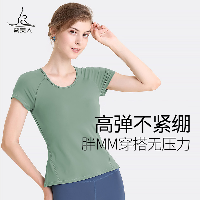 梵美人瑜伽服上衣胖mm大码短袖带胸垫运动跑步健身t恤专业健身服