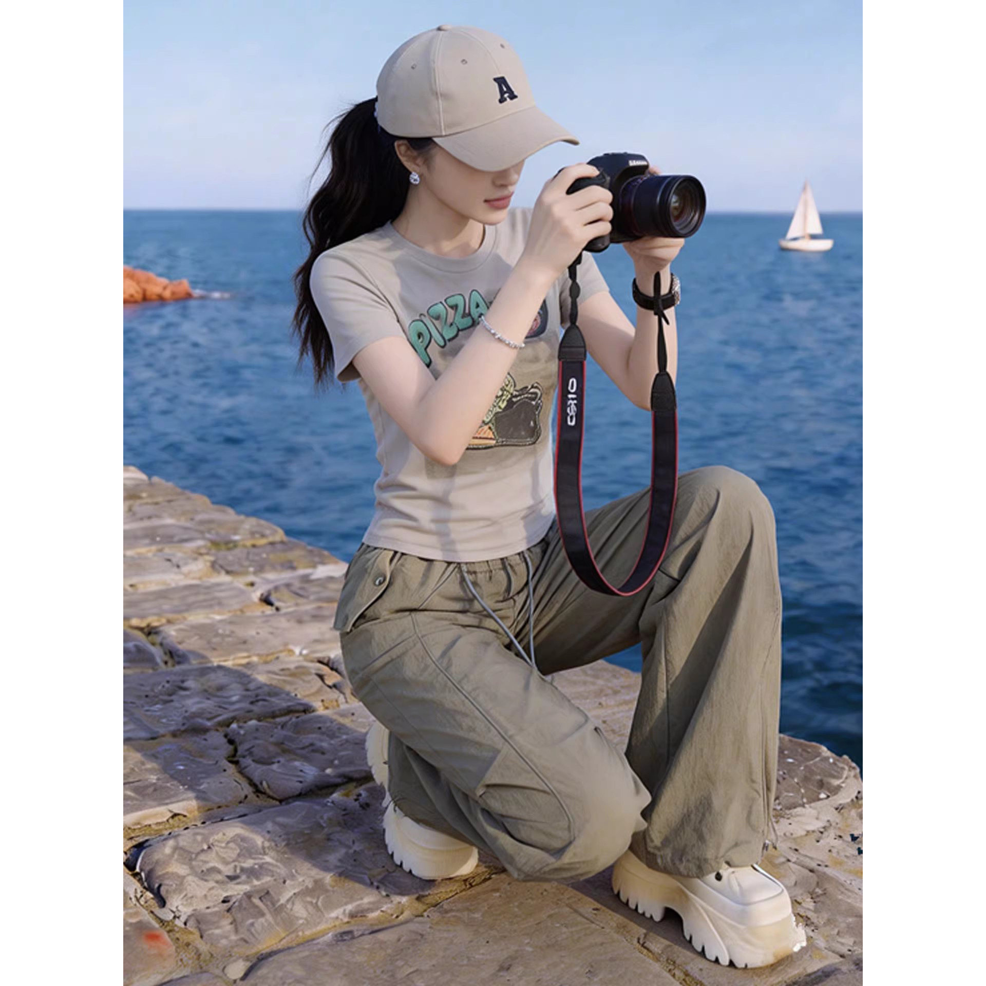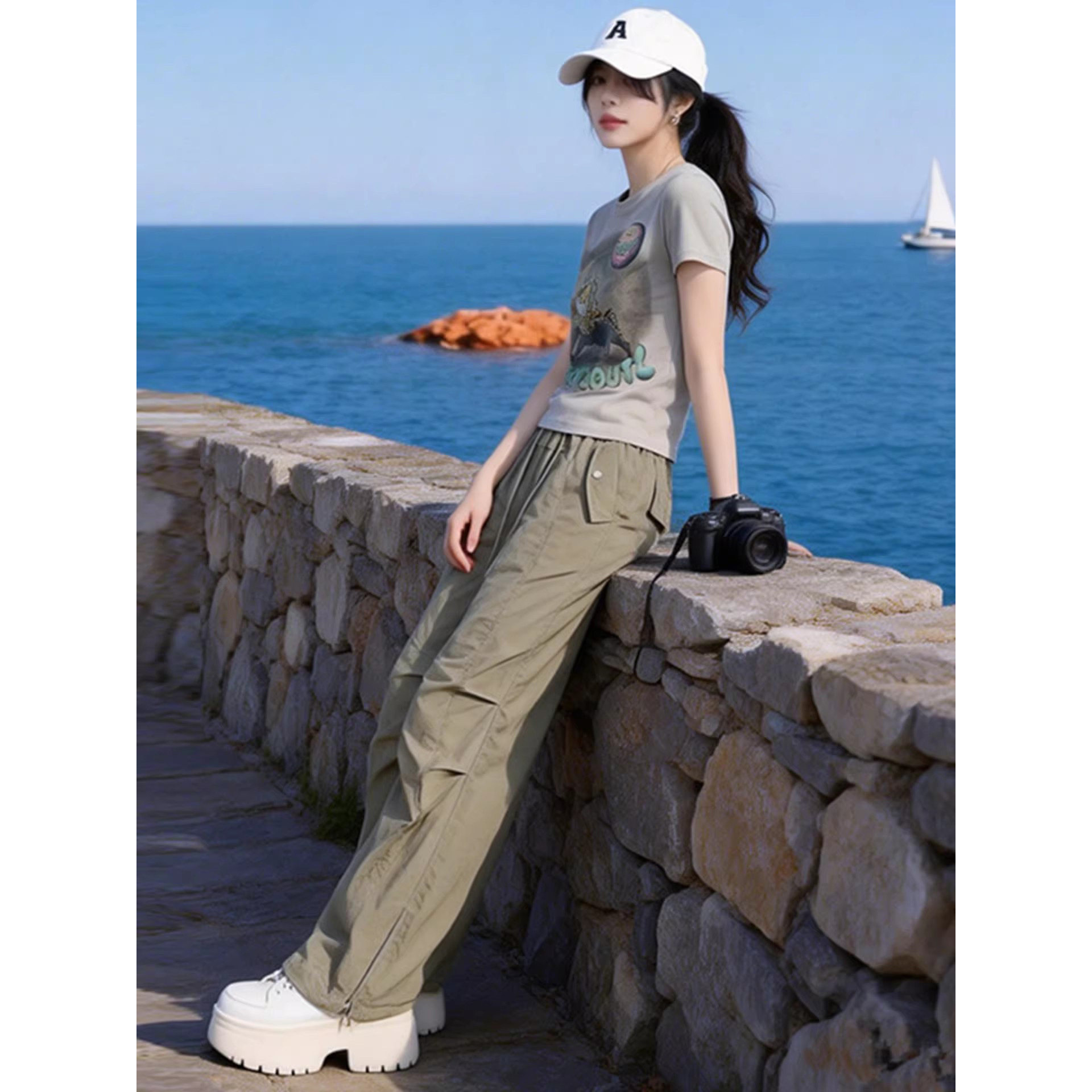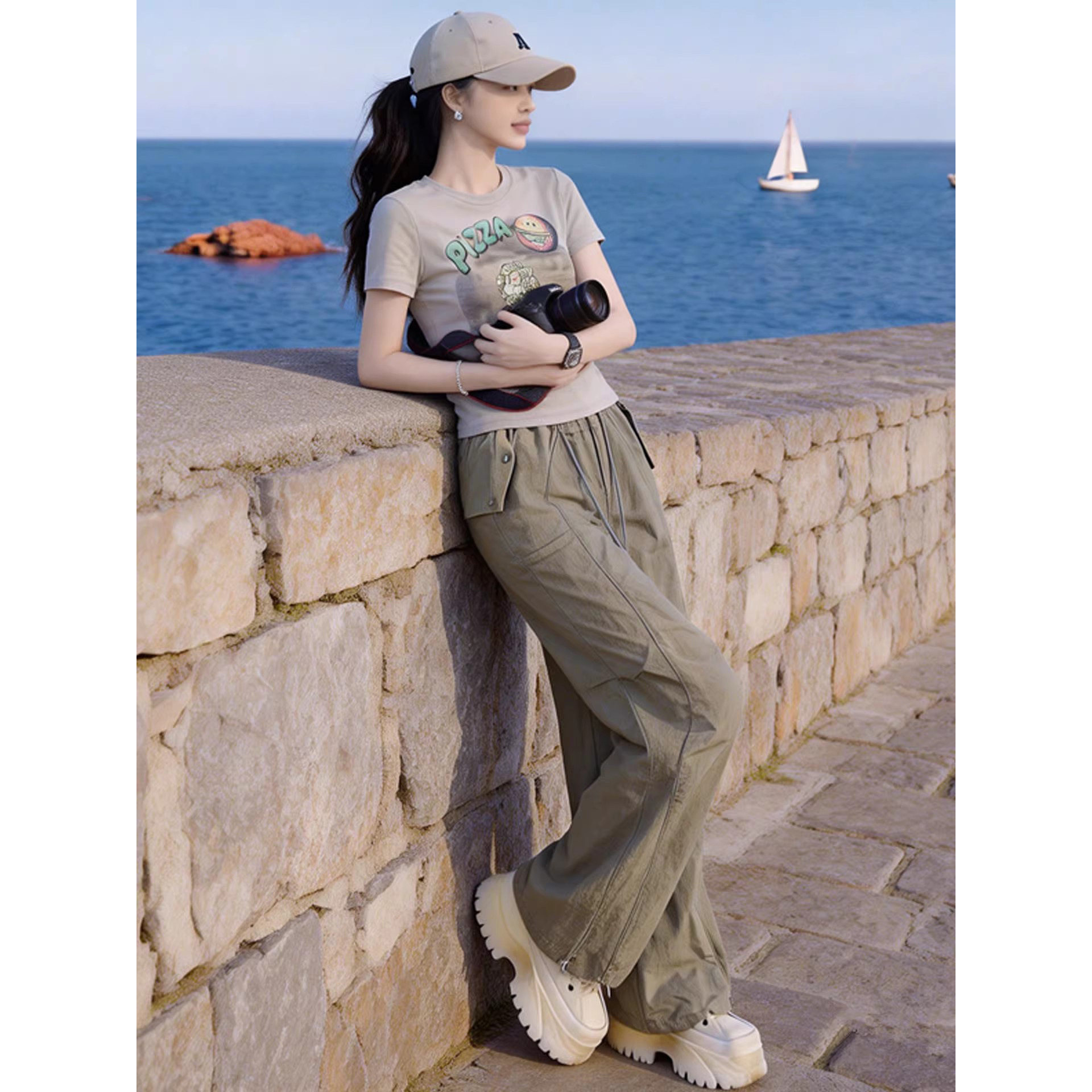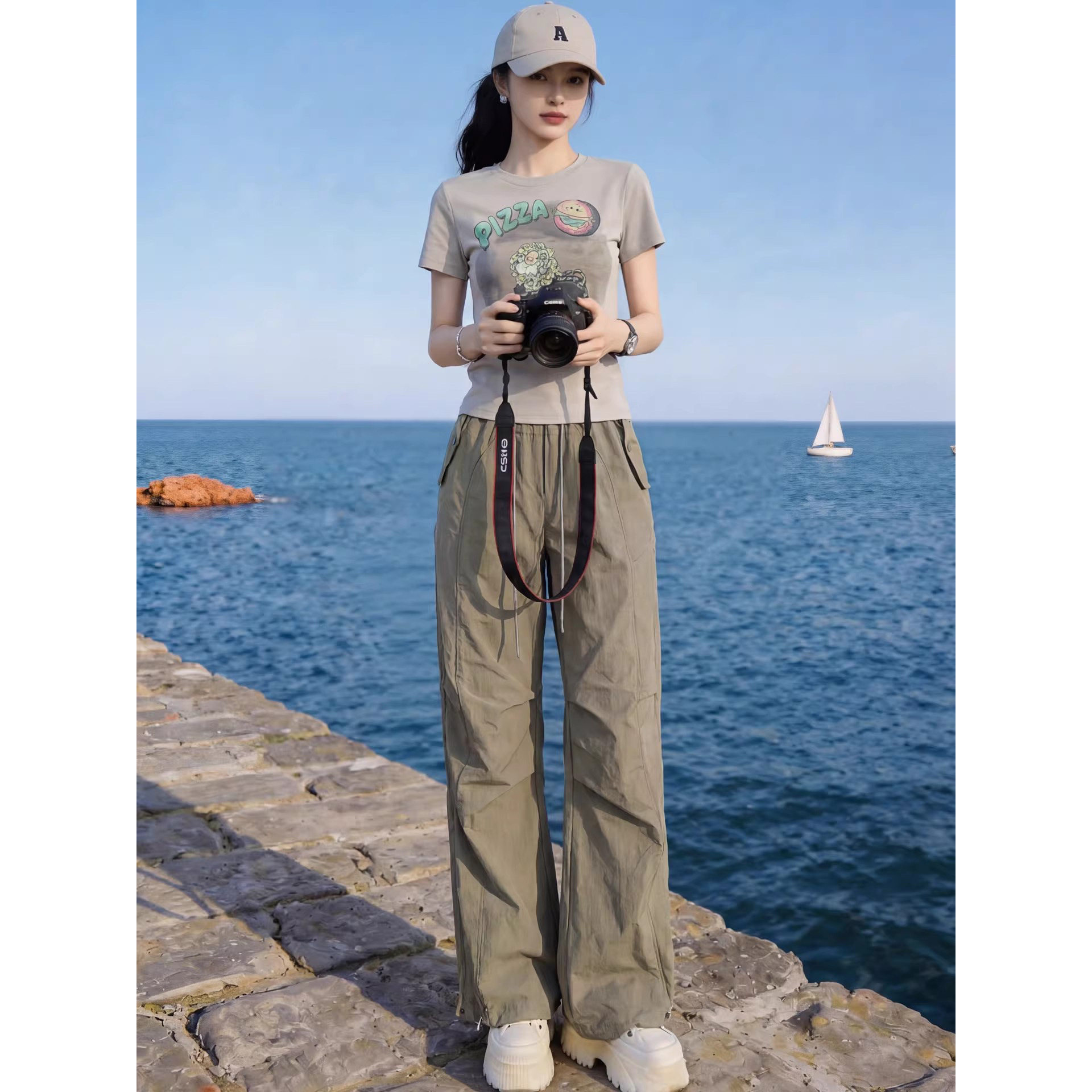小个子休闲运动套装女2026夏季显瘦减龄修身短袖T恤工装裤两件套
