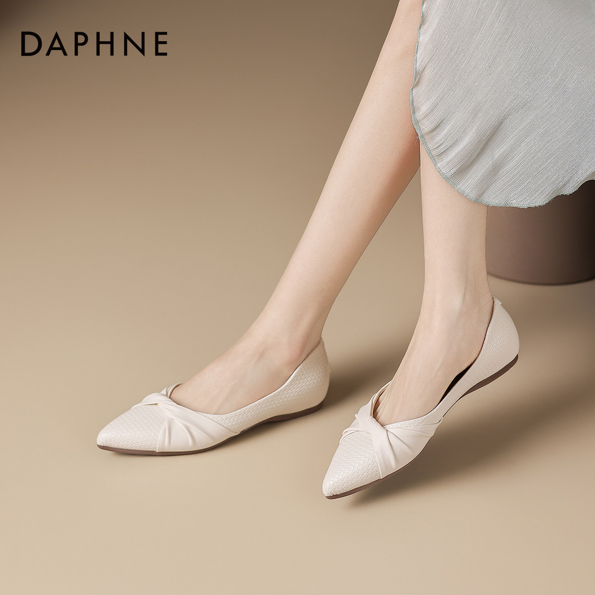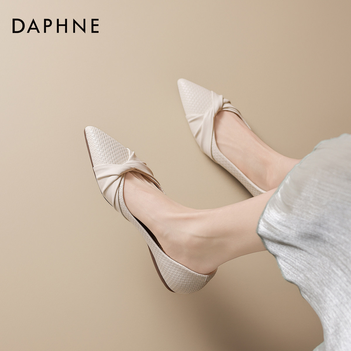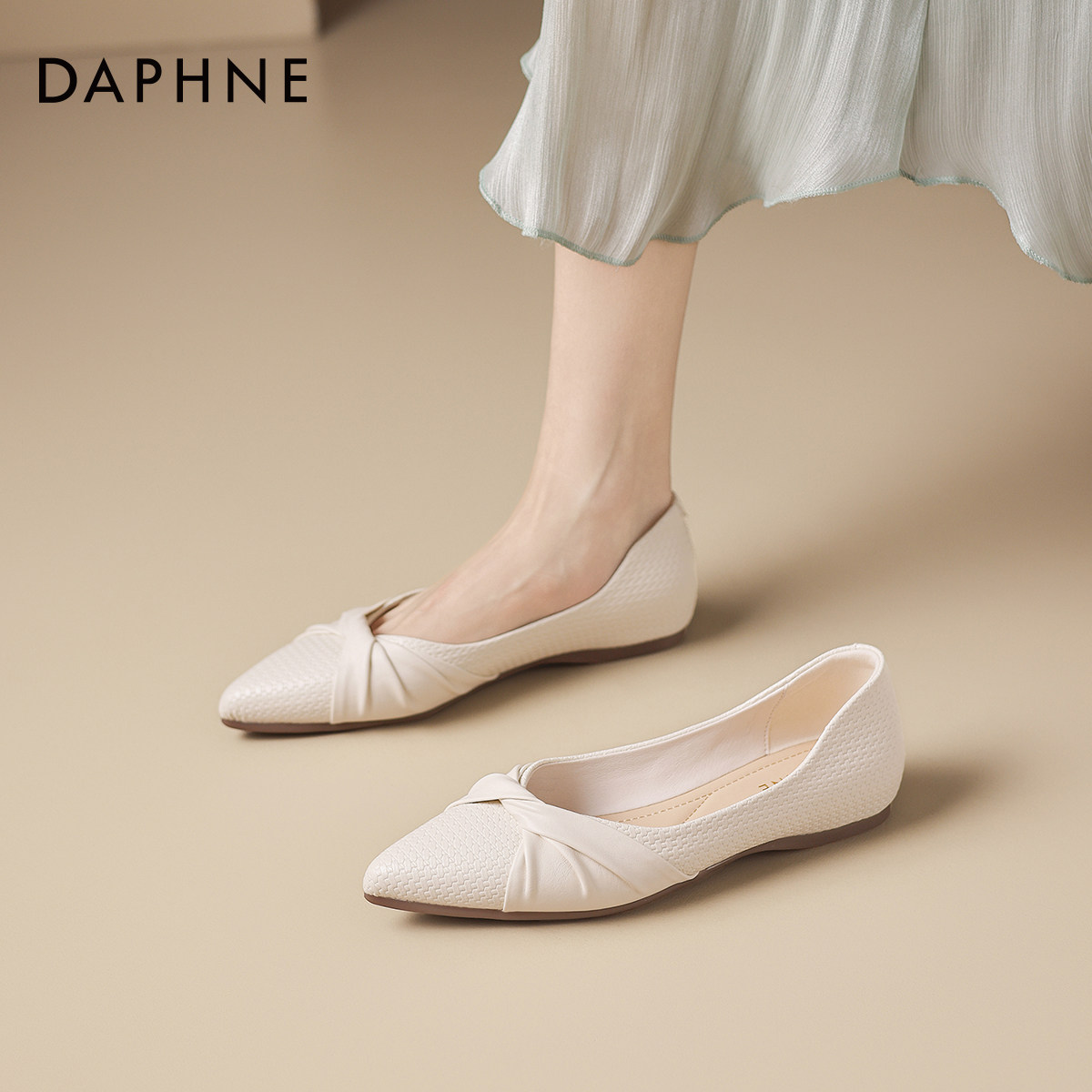 达芙妮法式浅口单鞋2026新款春夏尖头一脚蹬平底鞋优雅款通勤女鞋